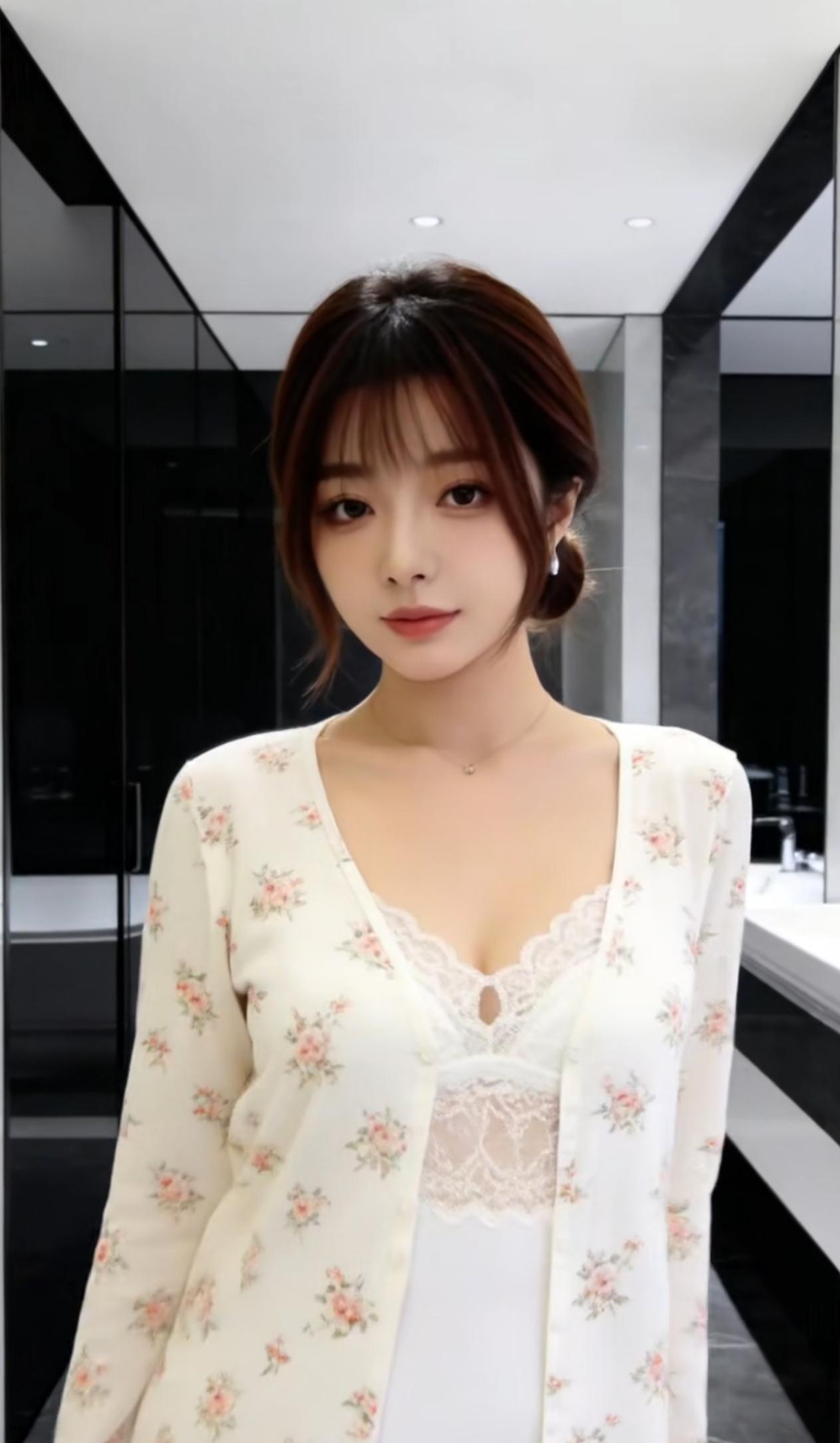 甜美的穿搭。 米白碎花长袖开衫,内搭蕾丝打底,温柔又有层次感。 美吗?