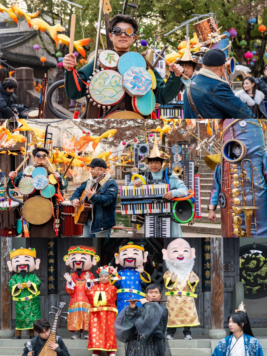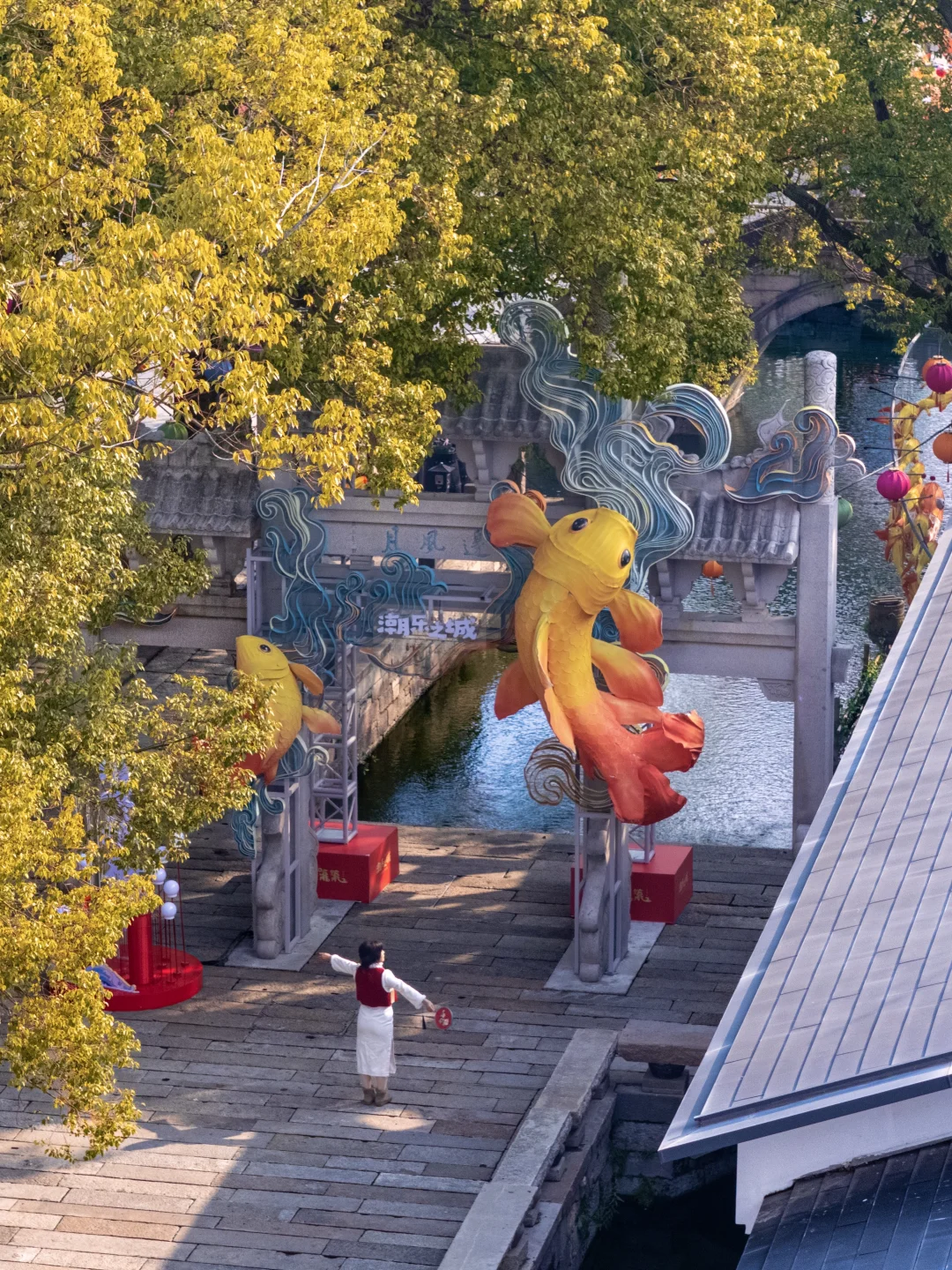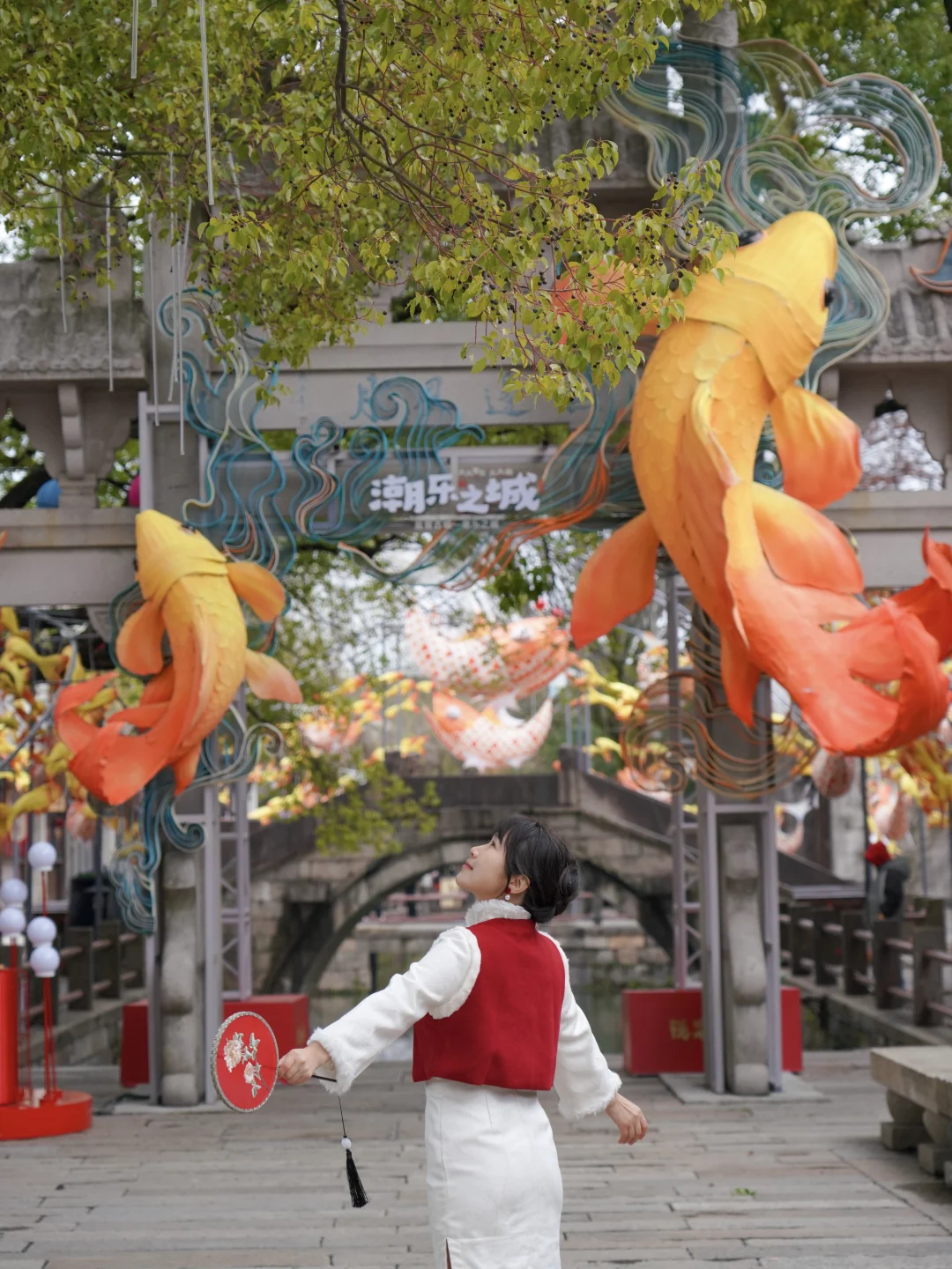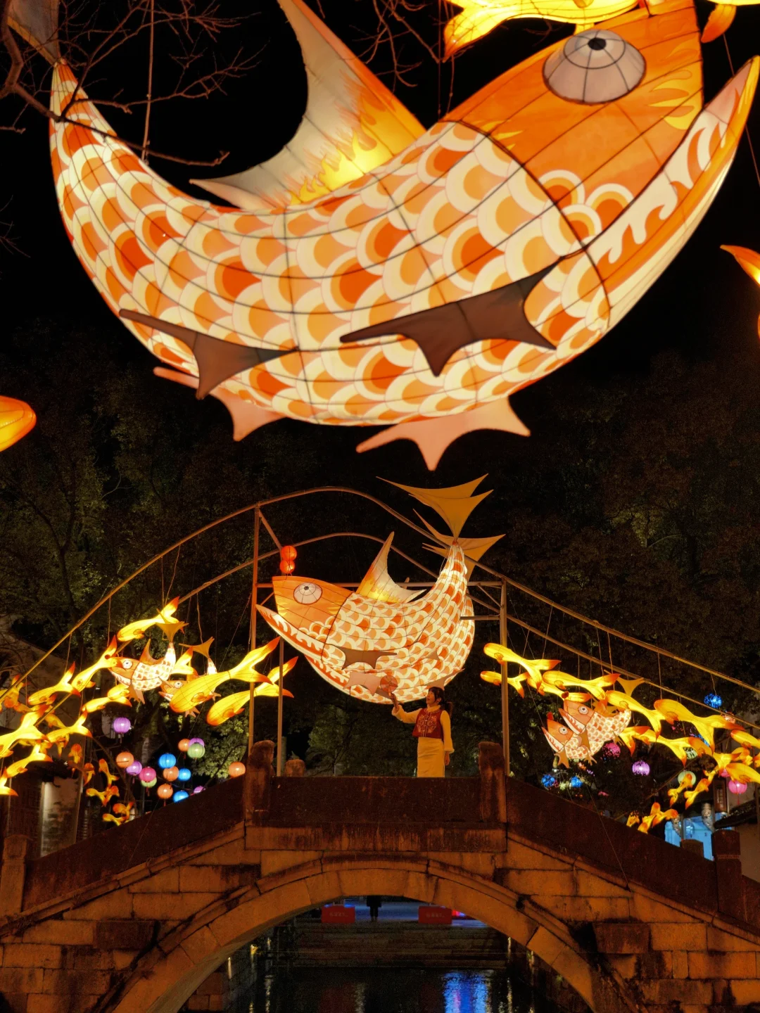 夜幕降临,鱼灯巡游的流光次第点亮百米河巷,现代艺术市集的暖光也随之苏醒。穿行于潮玩摊位之间,驻足赏鉴江南手作,古意与新声在此悄然和鸣🎵