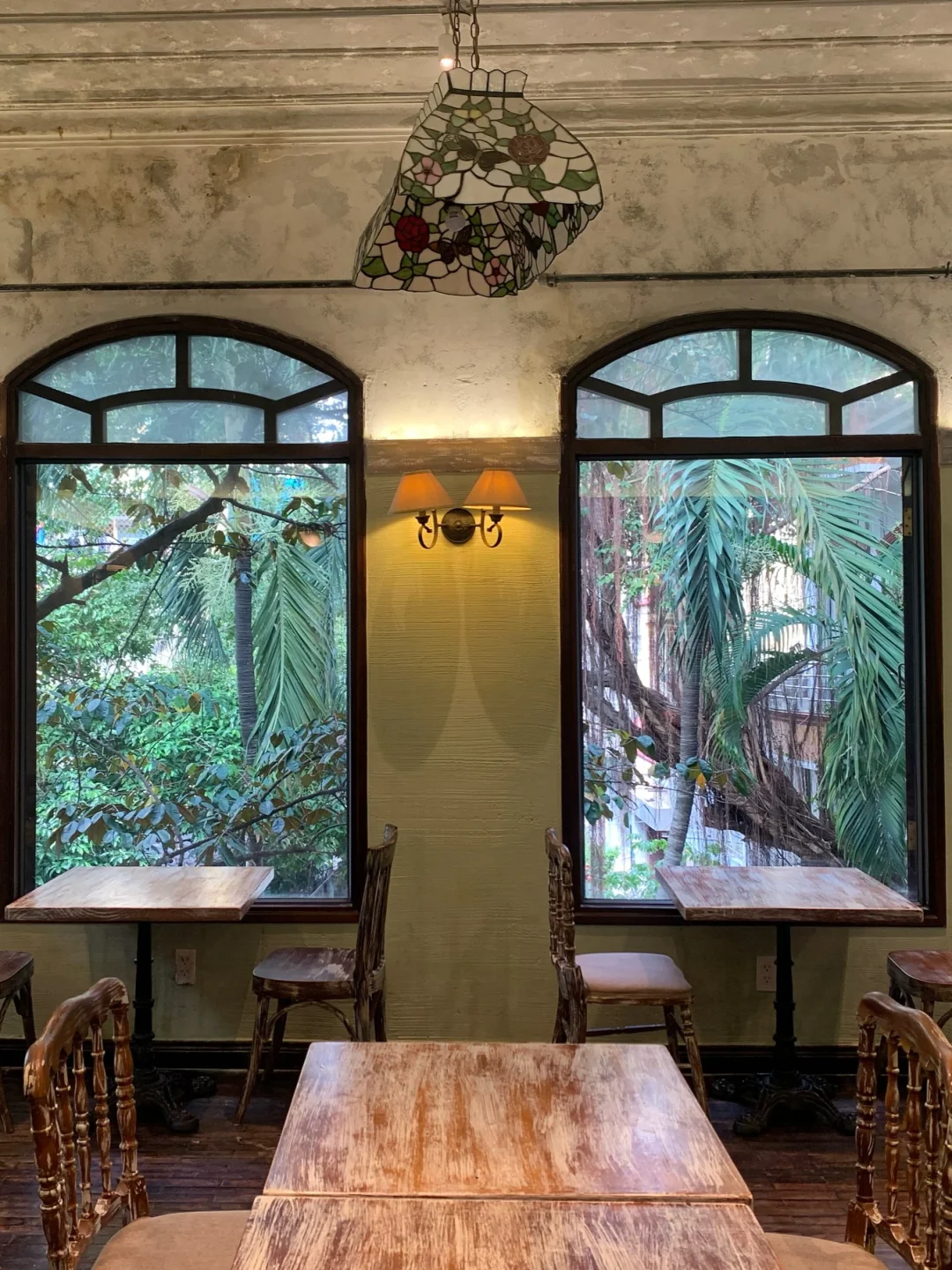 -窗外的景色很美,可以欣赏到郁郁葱葱被树木遮蔽的老街,俯瞰法国殖民时代的建筑群
