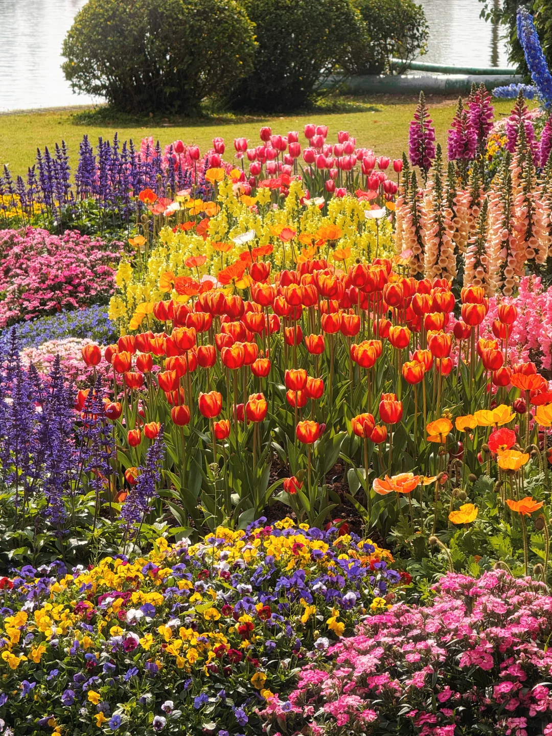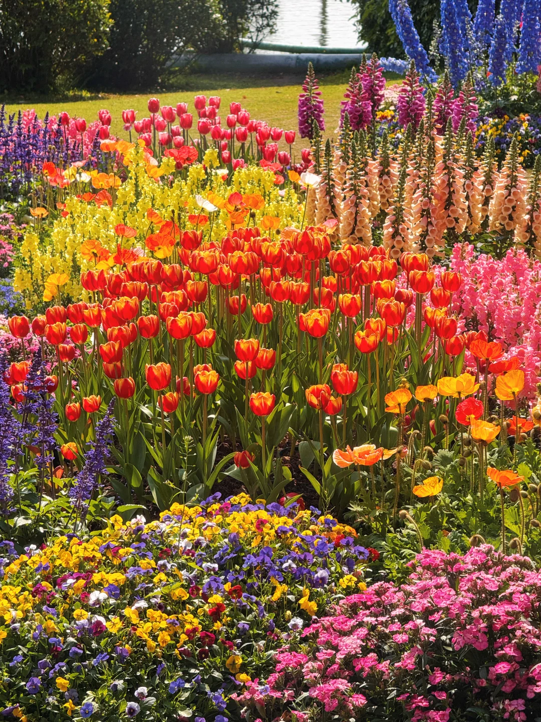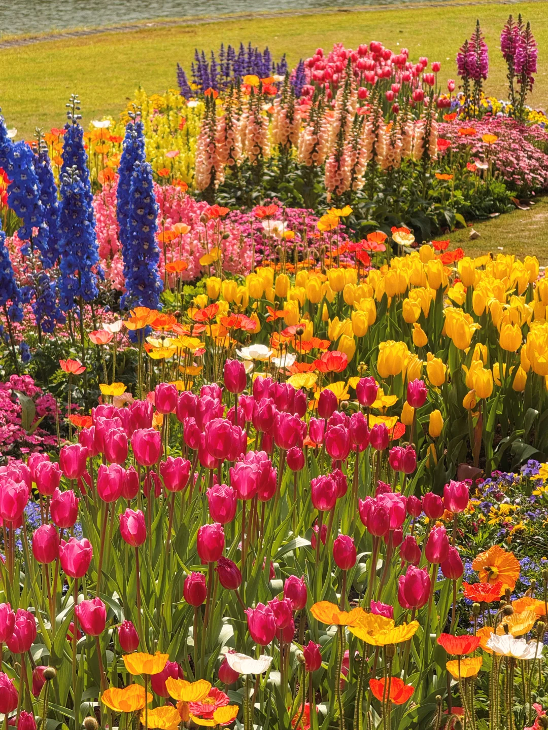 虽然现在的郁金香还只是"一小片"规模,但布置得非常用心,拍照超级出片🌷🌷簇簇饱满的郁金香搭配细碎的小雏菊,再配上园区的罗马柱喷泉湖,仿佛就是莫奈的后花园