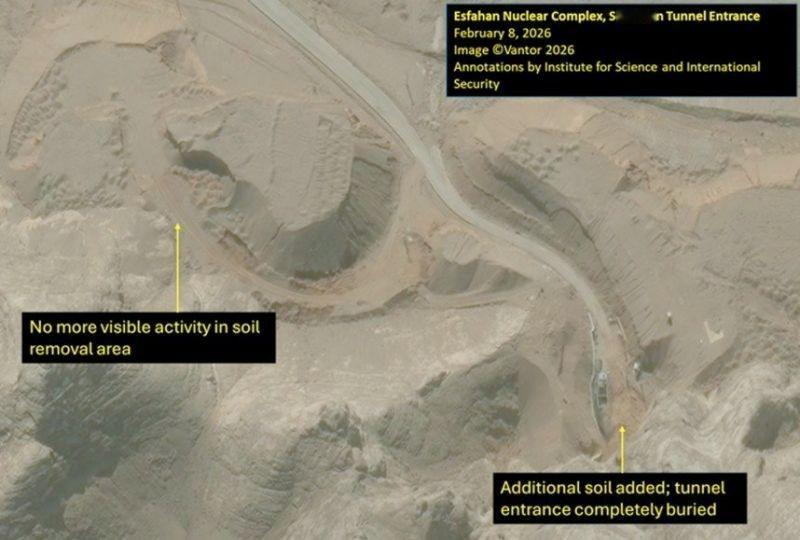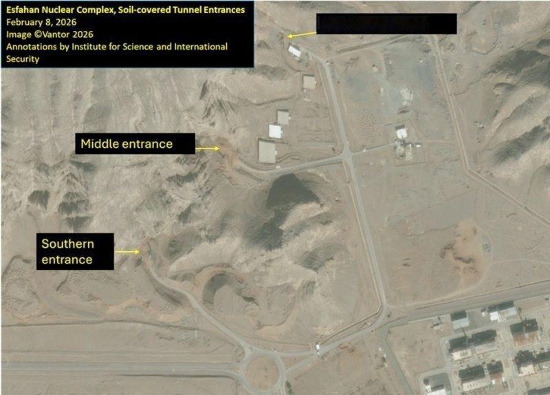 科学与国际安全研究所报告称,根据2月9日的卫星图像显示,伊朗伊斯法罕核综合体的所有隧道入口已被完全掩埋和封闭。