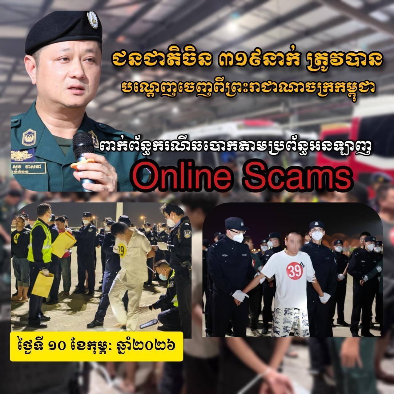 2月10日柬埔寨再遣返319名中国籍电诈嫌犯