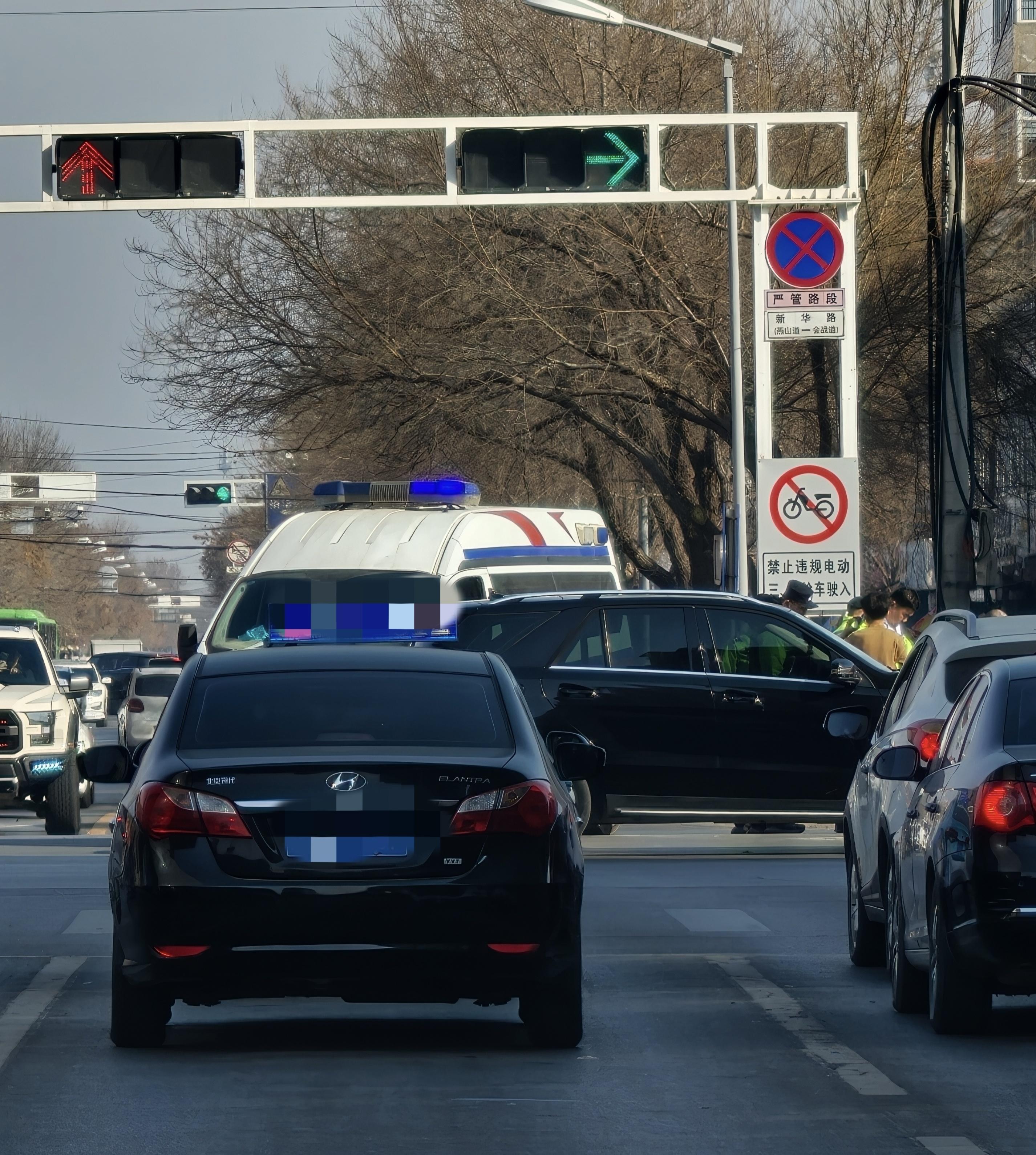 黑色SUV把老头乐顶翻了,救护车过来把里面的人接走。。。。
