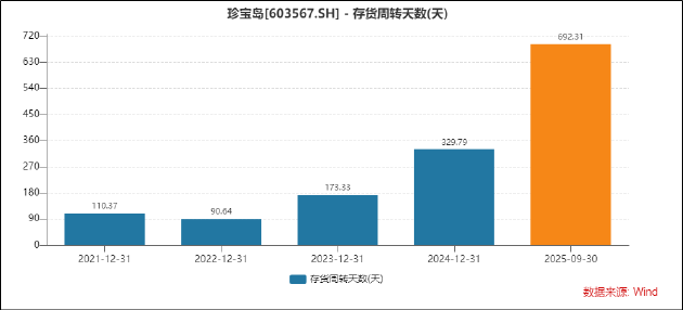 从营运指标数据的变动情况来看,公司经营效率持续恶化的现象则更为明显。2025年前三季度,公司存货周转天数、应收账款周转天数分别为692.31天、919.37天,双双创下历史新高,且相比去年均延长两倍有余。