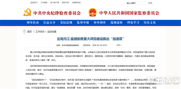 2026年2月10日,中央纪委国家监委网站报道:《云南元江:监督助推重大项目建设跑出“加速度”》。