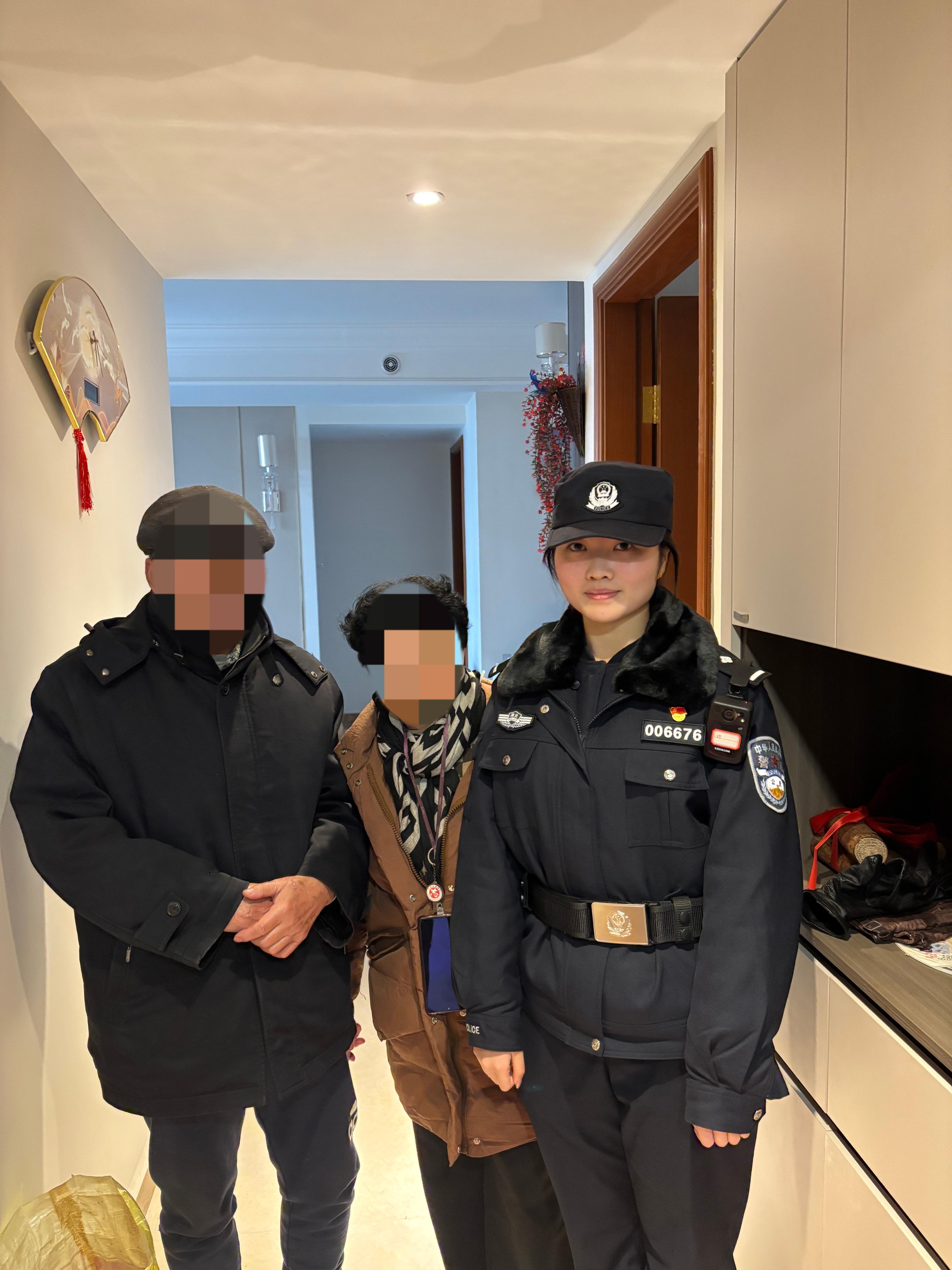 到家后,两位老人再三热情邀请民辅警进屋喝杯热茶暖暖身子,被民警婉言谢绝。临走前,民警反复叮嘱陈爷爷今后尽量不要独自外出,同时贴心提醒刘婆婆,可以在陈爷爷的随身物品上放置写有住址、家属联系方式的卡片,这才放心离开。