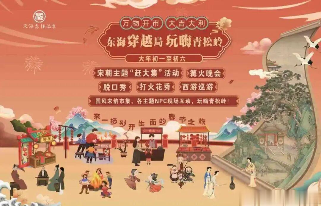 为让游客尽兴而归,东海县各大景区与酒店诚意满满。福如东海金陵温泉大酒店在2月14日至2月19日推出“金马贺岁泉暖团圆”主题活动,财神送祝福、新春DIY手工坊、许愿树祈福等项目让游客感受团圆之乐,游客可获免费手工体验。连云港东海君澜温泉酒店同期举办“骏马迎春福如东海”活动,幸运大转盘、春联临帖赠送、财神巡游送“金币”、汉服游园等福利不断,住店宾客可免费体验汉服打卡拍照。各大酒店推出丰富多样的年夜饭套餐,搭配生肖吉祥物、围炉煮茶等赠品,连住优惠套餐与“游山看海套餐”更将住宿与景区游览无缝衔接。
