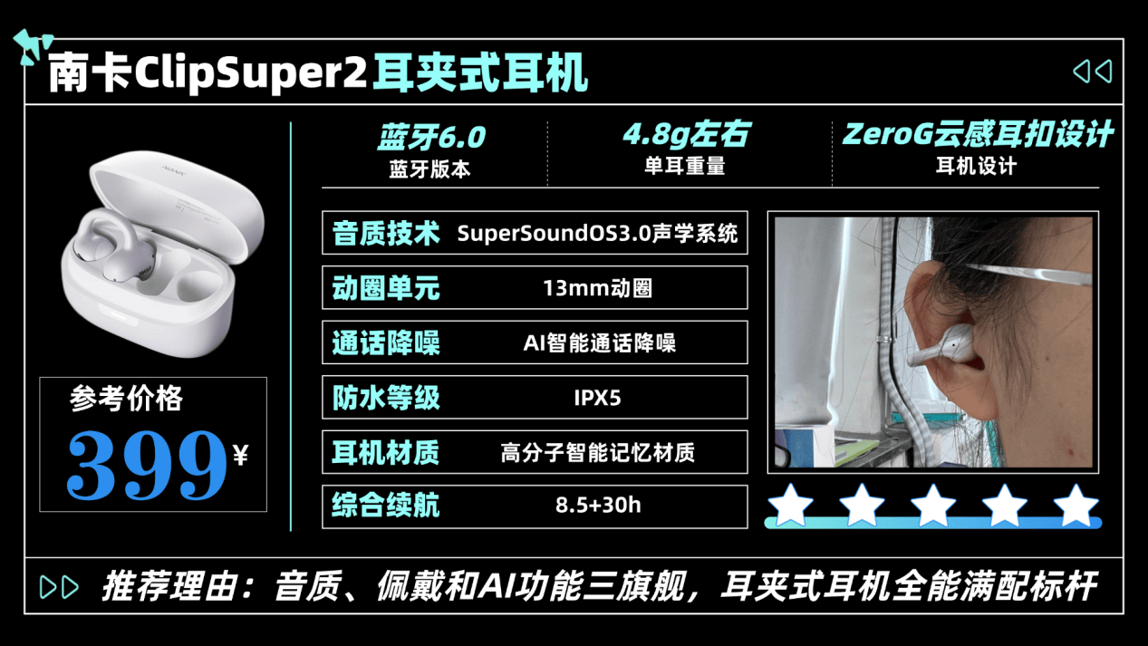 1.南卡ClipSuper2耳夹式耳机