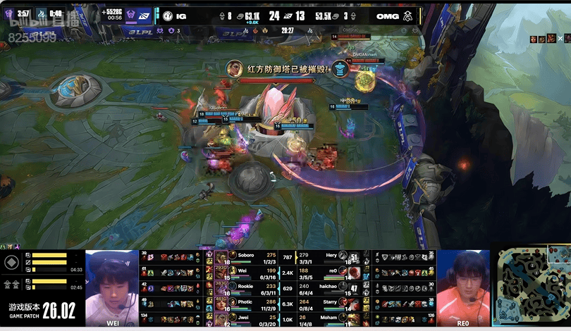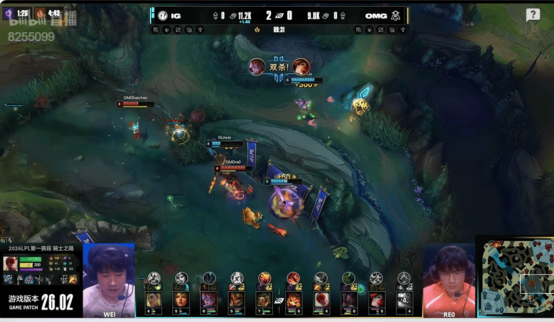 8分钟:双方在河道爆发团战,龙龟率先被秒阿萝拉游龙拿到三杀