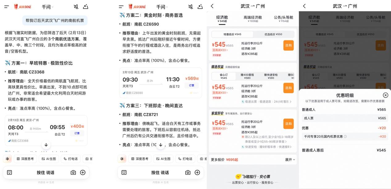 此前,千问APP已全面接入淘宝、支付宝、飞猪等阿里生态业务,实现AI购物功能。对航司来说,此次合作不仅拓展了新的渠道,也是航旅服务模式的创新升级。旅客仅需“一句话”即可享受智能、便捷、优惠的出行体验。