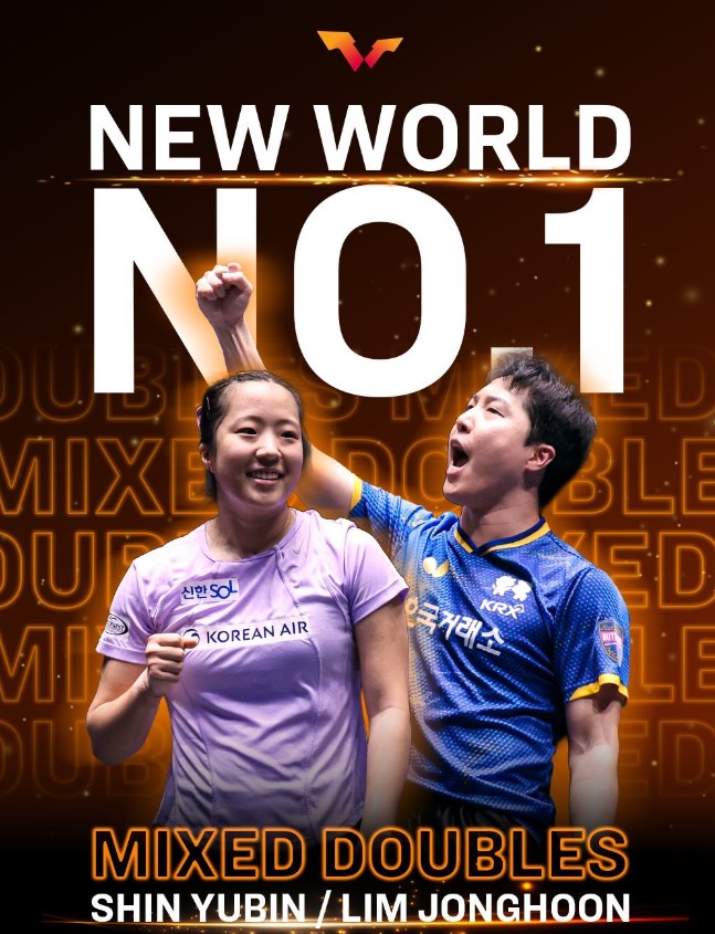 这是申裕斌/林钟勋组合首次登上混双世界排名第一的宝座。2025年,两人的混双组合表现出色,在2025年WTT香港总决赛中击败王楚钦/孙颖莎获得冠军,并在美国大满贯和欧洲大满贯瑞典站中闯入决赛。