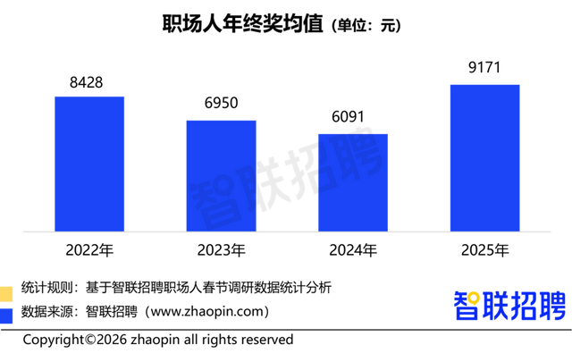 比起“虚头巴脑”的总结,实实在在的年终奖才是真职场慰藉。调研数据显示,有58.6%的职场人有可能拿到年终奖。有年终奖的人群中,有24.9%的职场人能拿到1万-5万元的年终奖,占比最高。值得关注的是,2025年年终奖平均值约为9171元,较2024年增加3080元,创下近4年来的最高纪录。