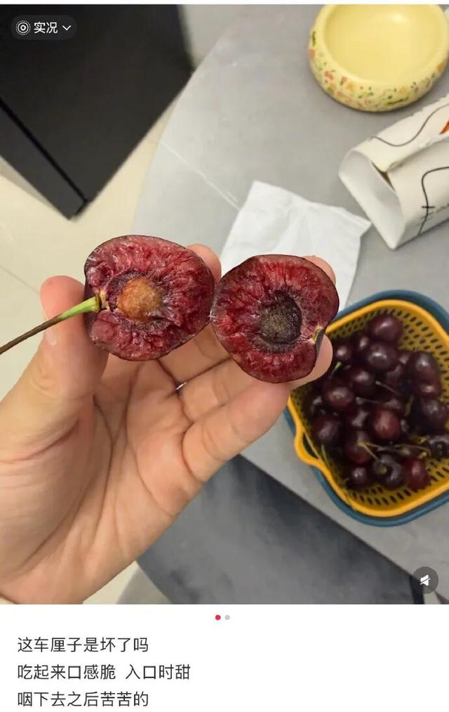 然而,据生命时报报道,车厘子价格虽然下降了,但有不少网友发现,近期买到手的车厘子,外面看起来没事,吃起来却怪怪的,颜色变成了暗褐色,果肉发软,有的还有点苦味,消费体验犹如“开盲盒”。