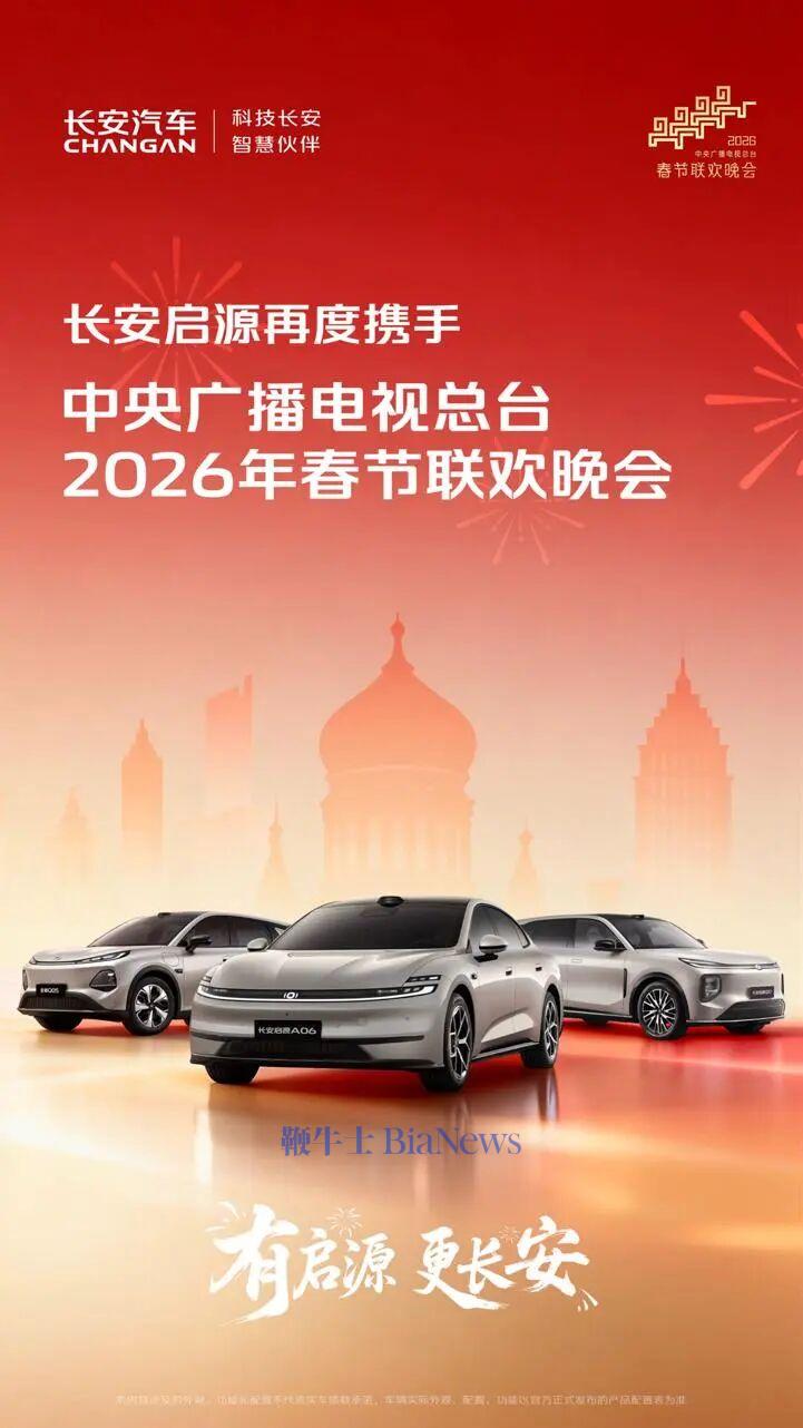 2月11日,中央广电总台总经理室宣布,近日,中央广播电视总台与长安汽车正式达成合作,长安启源将亮相总台《2026年春节联欢晚会》哈尔滨分会场。