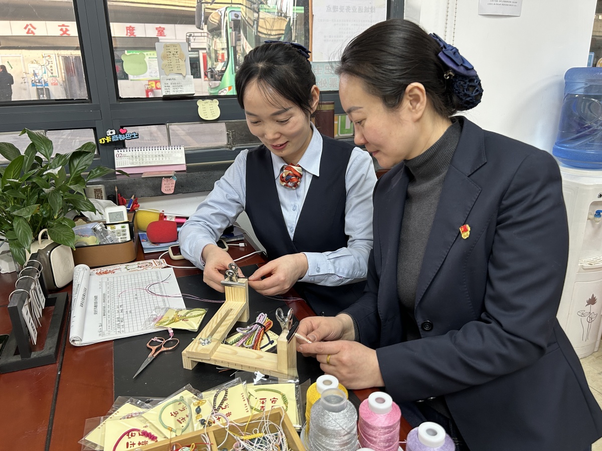 除了沉浸式的车厢氛围,“商都号”还准备了马年专属互动惊喜。讲解员利用业余时间,手工编织特色马年手链作为互动礼品。手链以吉祥红绳为基底,搭配朱砂转运珠与小巧马形配饰,融合传统编绳工艺,每一款都饱含匠心,承载着“马年顺遂、平安喜乐”的美好祝愿。乘车途中,讲解员围绕商都历史、马年民俗、沿途景点开展趣味问答,答对的乘客即可领取这份专属好礼,让原本平淡的旅途变得趣味十足。