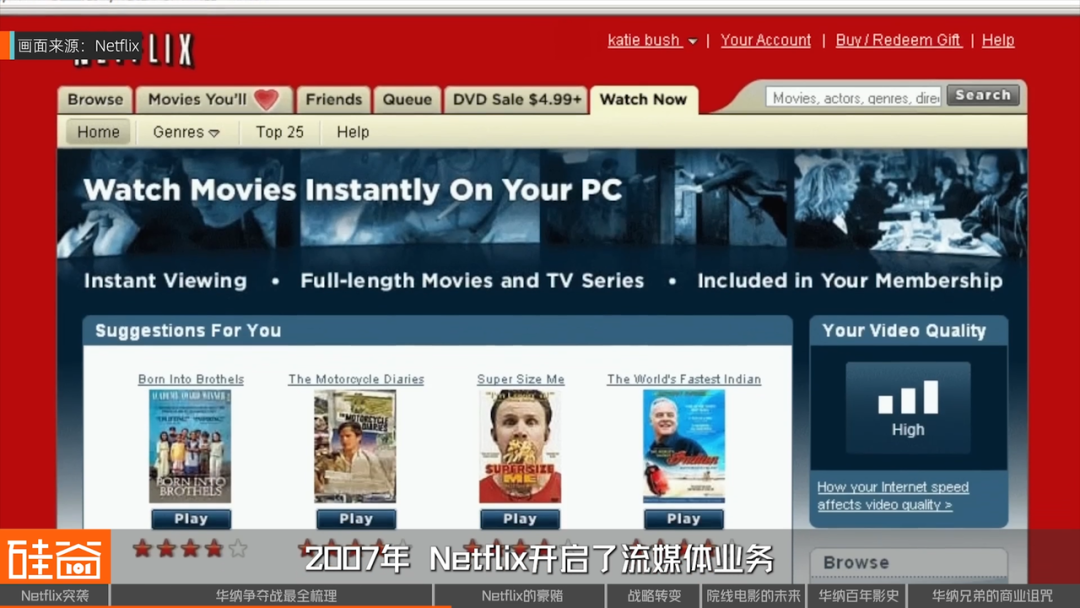 2016年Netflix同时在130个新国家上线,一夜之间覆盖了全球190多个国家。为解决不同国家基础设施极差导致的卡顿,Netflix开发了复杂的自适应码率技术和全球分发网络OpenConnect,从此不再受限任何单一市场。
