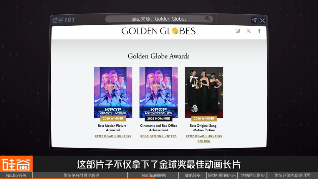 既然说到索尼,当然不能不提去年大火的《K-Pop:恶魔猎人》,这部片子不仅拿下了金球奖最佳动画长片,更以超过5亿次的播放量,成了Netflix历史上最成功的原创电影,但有趣的是,这原本是索尼自己的项目,最后却变成了Netflix的亲儿子。