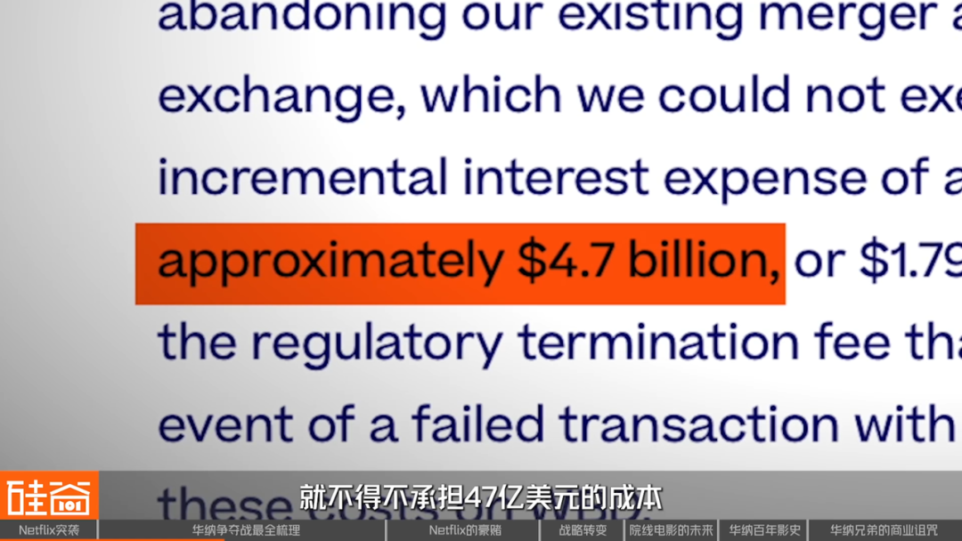 第一,解约成本太高。华纳董事会认为,如果终止与Netflix的收购协议,就不得不承担47亿美元的成本,包括28亿美元的分手费,15亿美元的债务重组计划流产的补偿金和对应的利息支出,非常不划算。