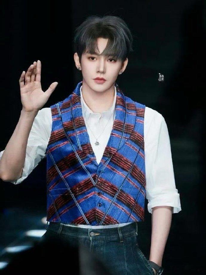 邓为不愧是内娱现役法拉利邓为蓝紫格纹马甲造型邓为这身造型真的鲨疯全场,蓝紫格纹马