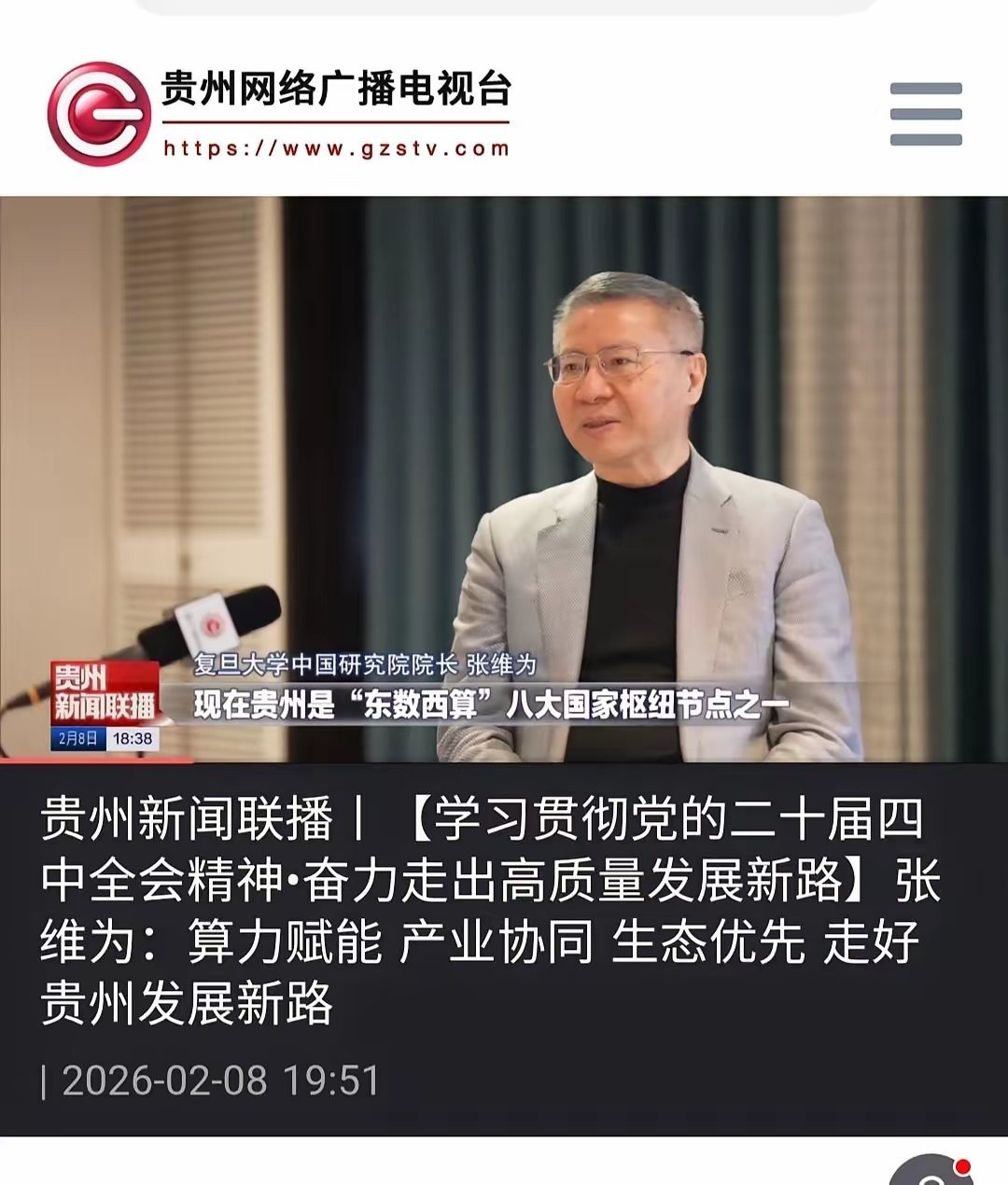 “何德何能?---简评张维为为贵州经济把脉。”张维为一个搞翻译出身的,对地方经济指手画脚,是不是有点“跨界演出”过头了? 质疑理由如下;1,专业不对口,建议难免空泛他给贵州提的那些“全产业链”“算力赋能”的建议,听着高大上,但细想都是些放之四海而皆准的宏观口号 。一个区域的经济怎么发展,涉及到产业基础、地方财政、民生实际等具体问题,这需要扎实的经济学功底和深入的实地调研,不是靠翻译几本书、讲讲“中国模式”就能把握的 。2, 张维为不是“全能教授”张维为虽然在外交翻译和政治传播上有建树,但这不等于他能自动成为经济专家 。这种“名气大于专业”的风气,容易让公共讨论变得浮夸,反而掩盖了真正需要被关注的地方难题。总而言之,贵州的发展,需要的是真正懂行、脚上沾泥的实干家,而不是“万能公式”式的空谈。跨界思考是好事,但跨得太猛,就容易变成“纸上谈兵”,张维为何德何能🉑为贵州经济把脉?