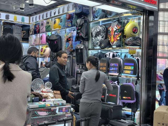 在扬之盛电子柜台前,工作人员忙着接待,“今年外国客人特别多,带着翻译器,有的翻译器都不用,普通话说得很不错。智能手表、蓝牙耳机、按摩仪是最热销的,他们有的自用,有的则是带回自己的国家转售。”