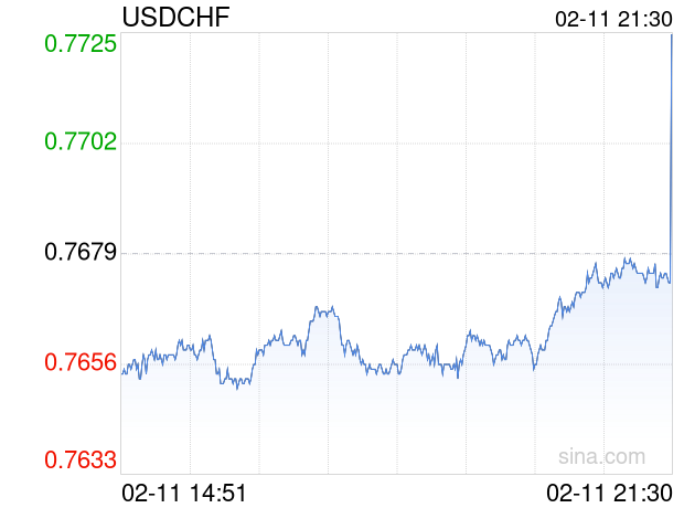 新浪外汇消息2026年02月11日,截至21时30分,外汇市场上美元兑瑞士法郎汇率突破1美元兑换0.7726瑞士法郎。涨幅为0.6121%