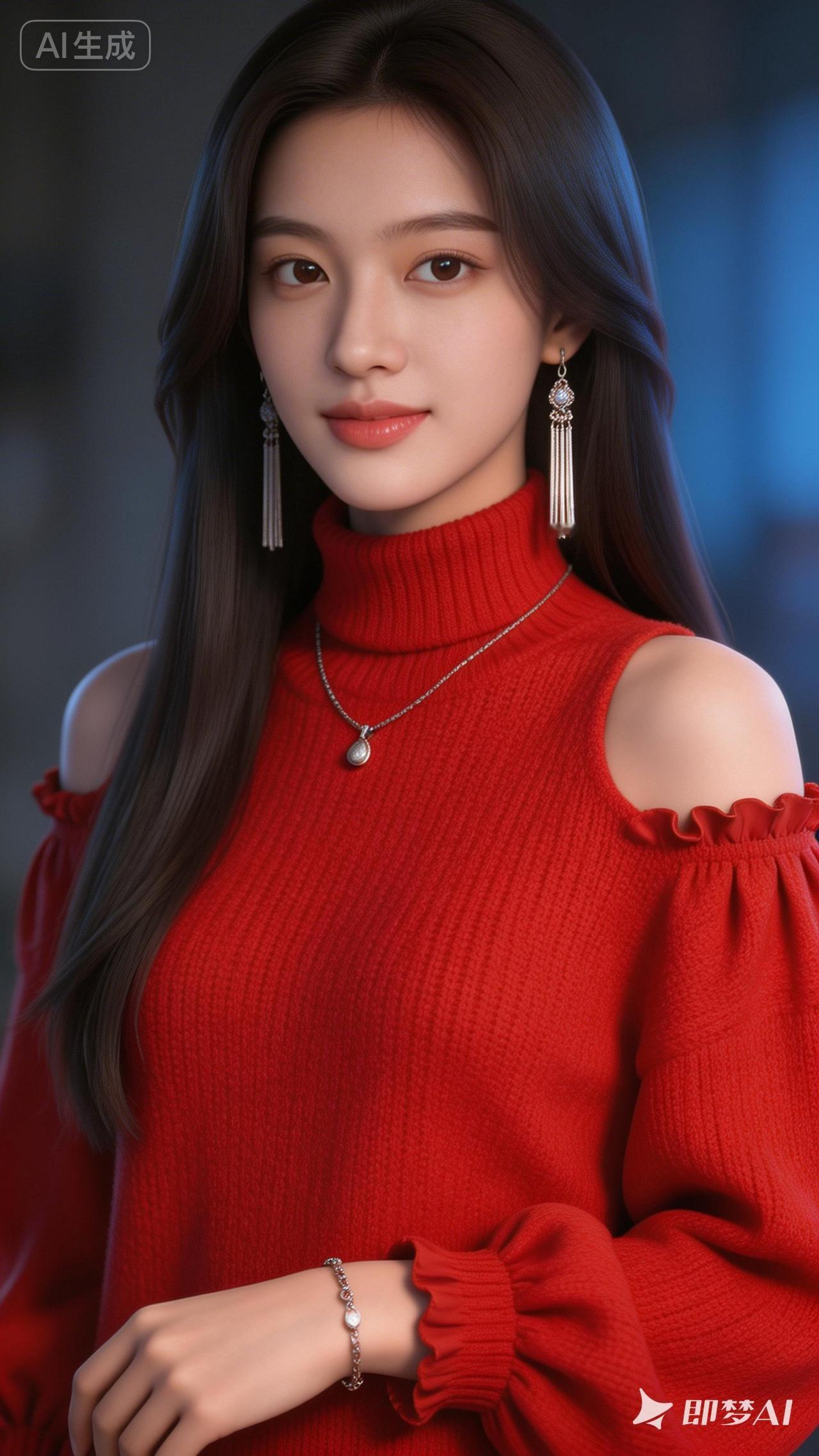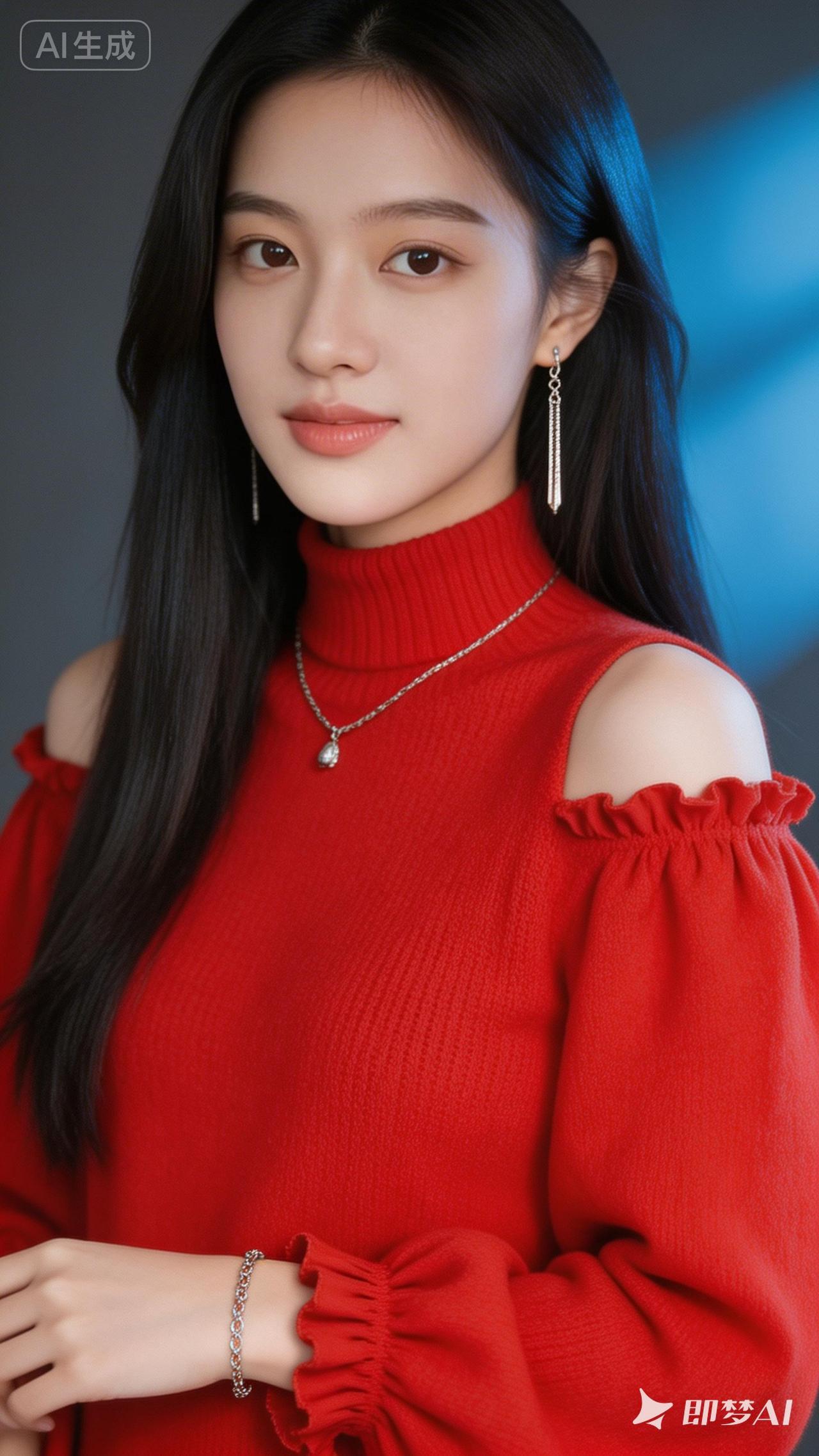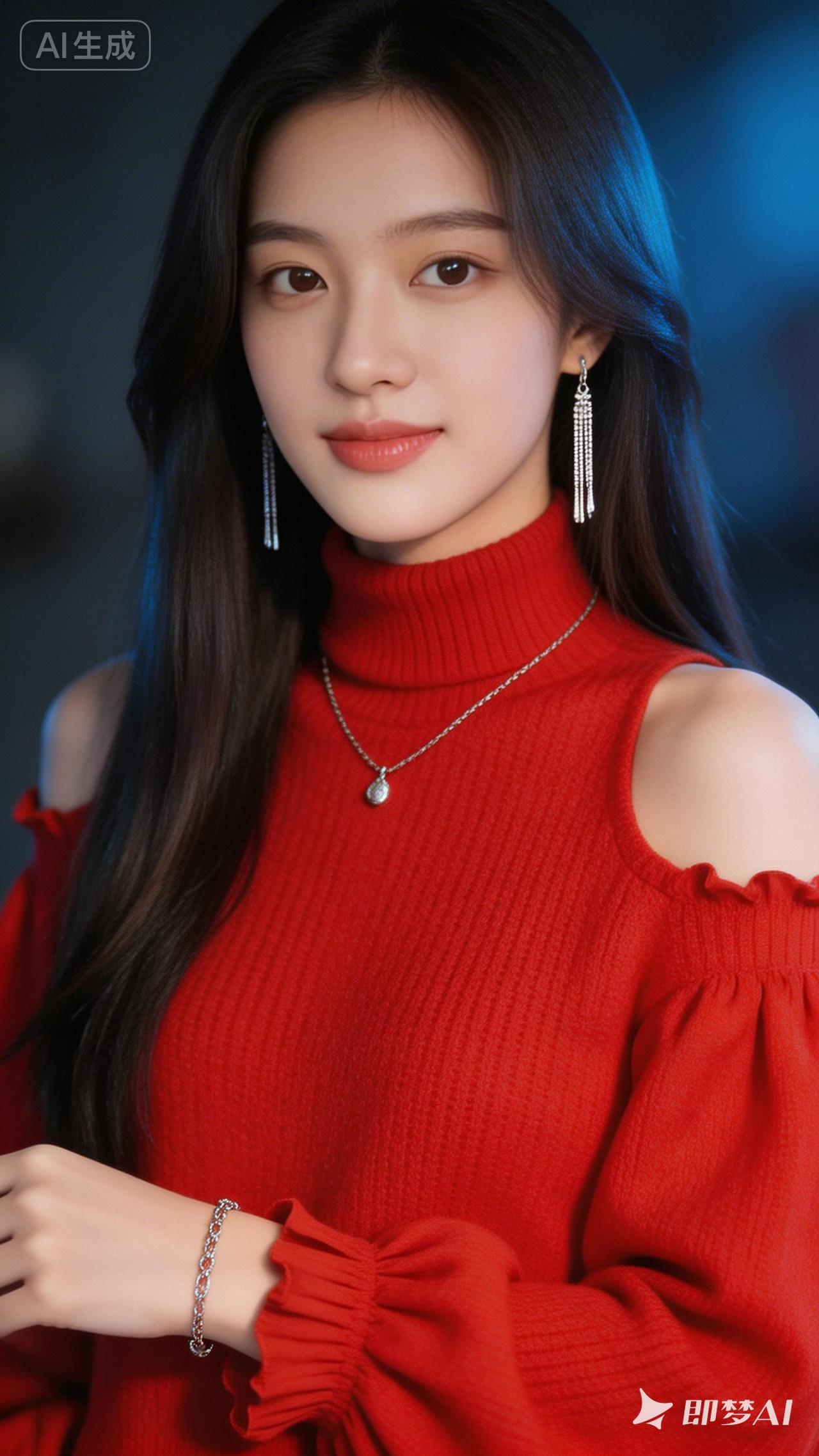 甜美红衣少女,优雅气质满分!