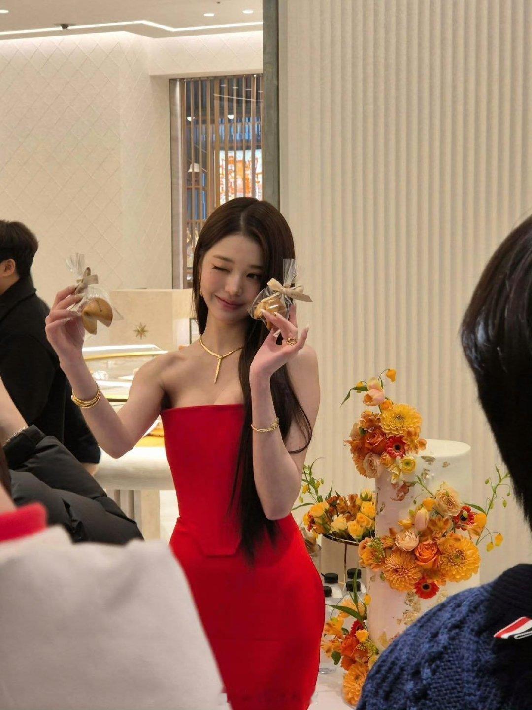 张元英红裙黑长直 张元英宝格丽活动图 明艳红裙+黑长直,张元英把高贵优雅焊在身上