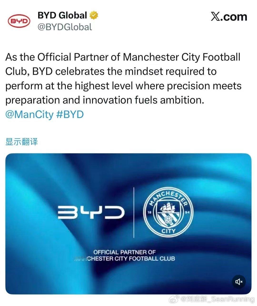 比亚迪官宣成曼城全球官方合作伙伴,国际米兰、泰国国家队也纷纷牵手。比亚迪将为曼城