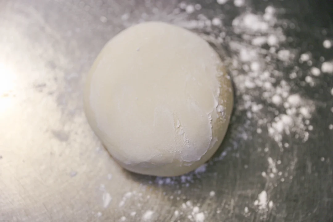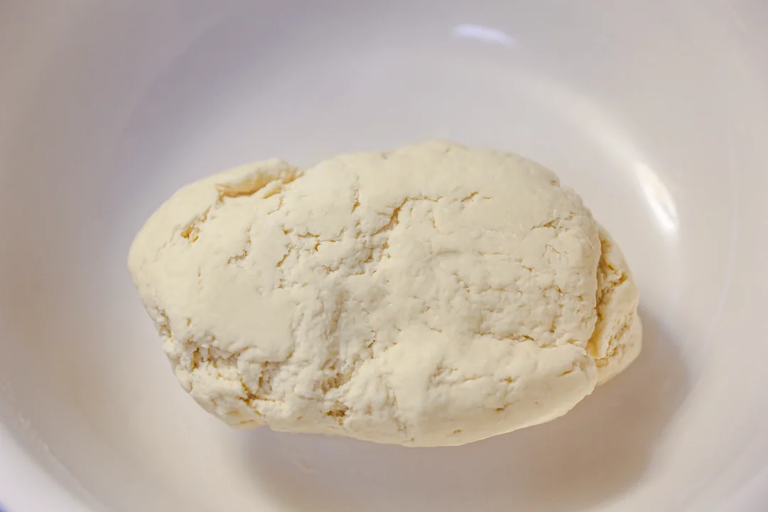 这是一块相对比较干的面团,揉搓的时候只要把所有的擀面粉都揉搓成团即可。