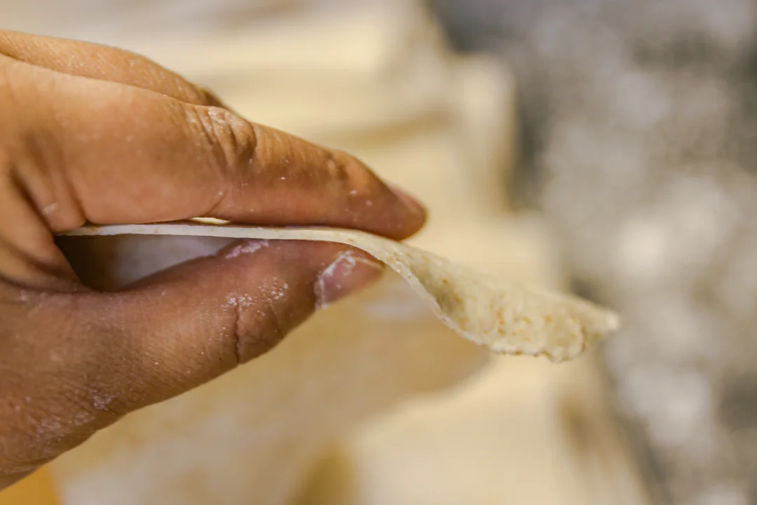 6.最后一遍压制得时候加入玉米淀粉补面,防粘。