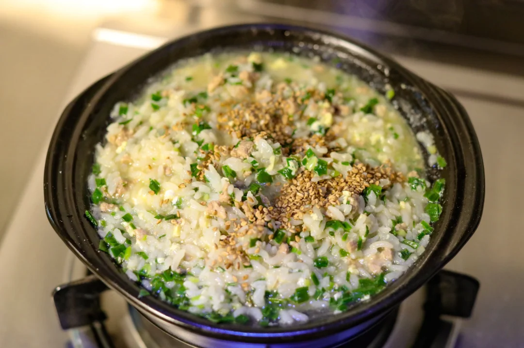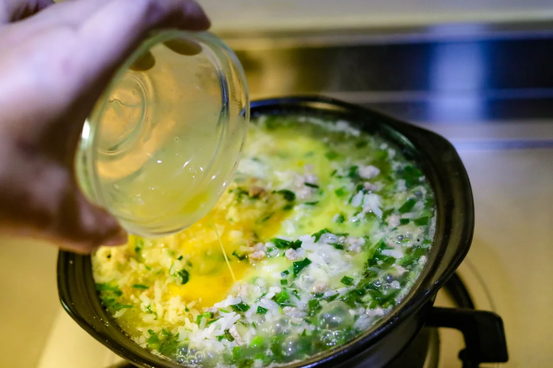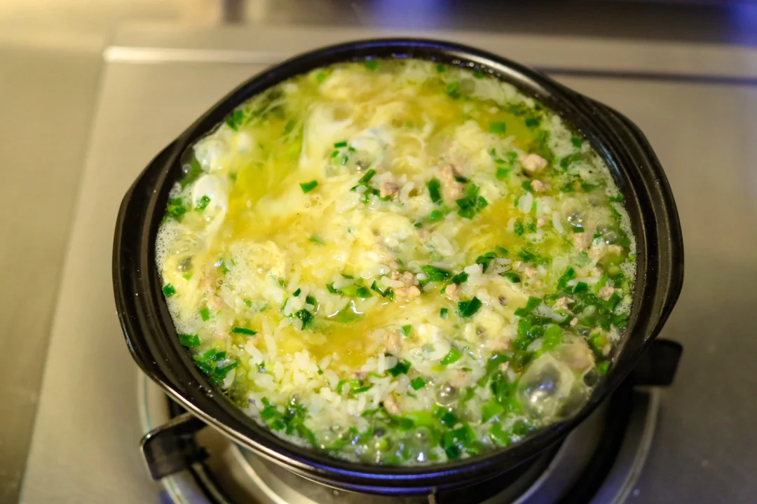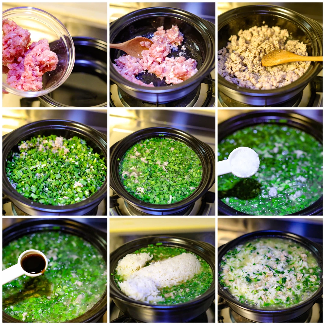 🌈今天就结合小时候的味道和杂志上看的,总结出了自己的味道。做法都是让米饭充分吸收汤汁的味道,不只好吃,也能让人身心都感受到温暖。这次食材部分我用到了韭菜和猪绞肉,韭菜也是春天里的当季蔬菜,十分新鲜,两者的搭配再合适不过,加上高汤,营养很丰富。做法也很简单,10分钟就可以搞定。