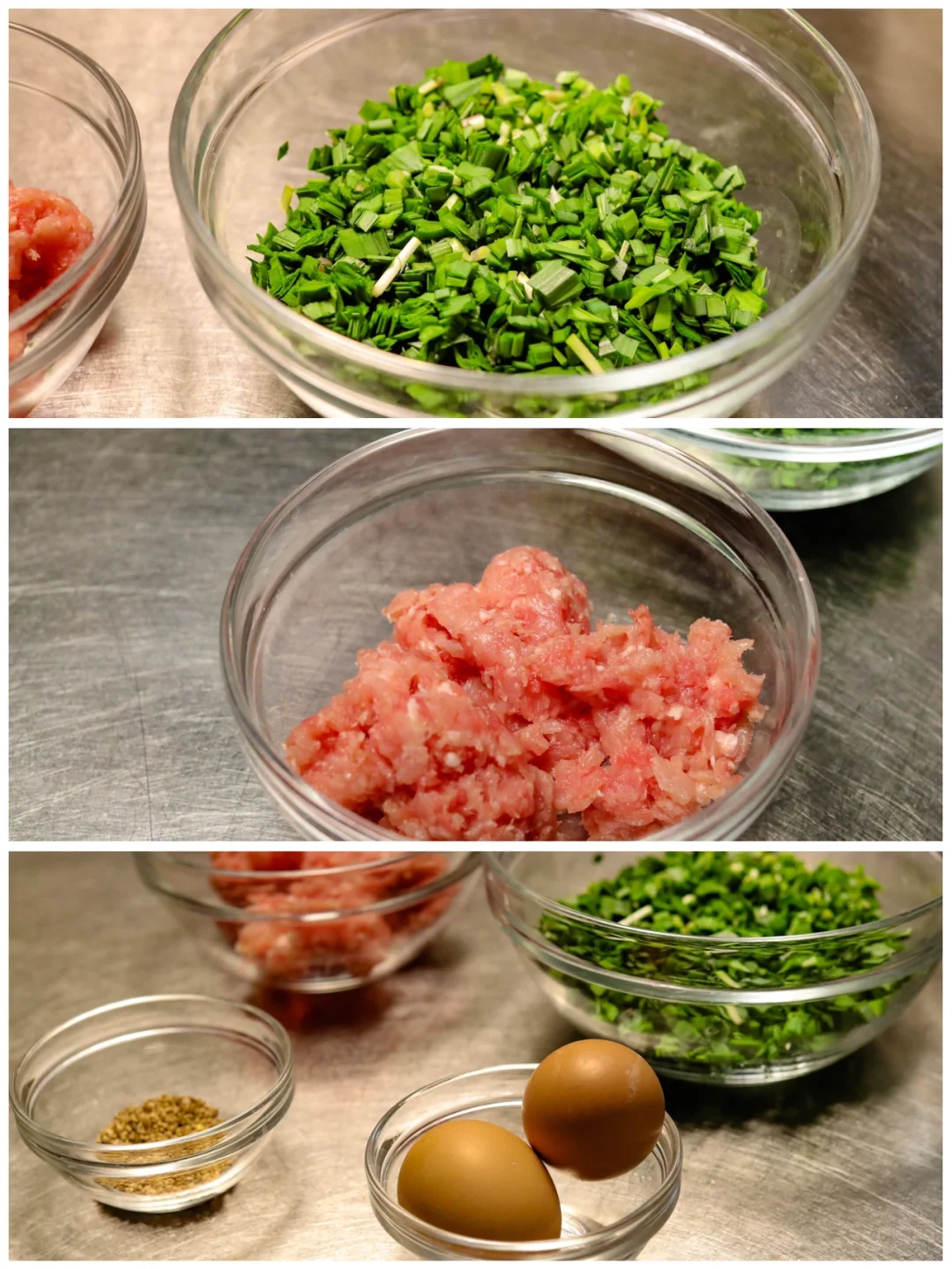 2.除了韭菜之外,还有适量的绞肉。可以选择猪绞肉也可以是鸡绞肉。这次我选择的是猪绞肉。