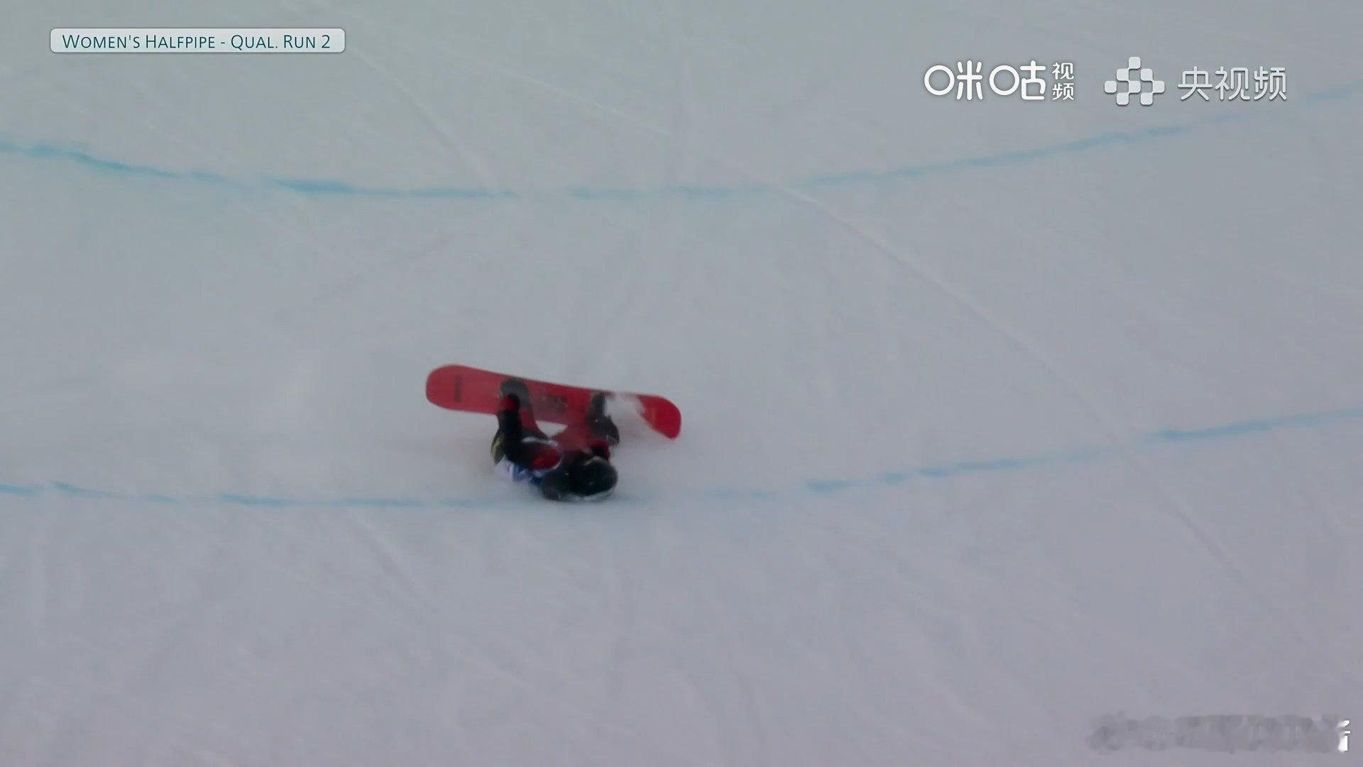 刘佳宇摔得好重 米兰冬奥会单板滑雪女子U型场地技巧预赛,刘佳宇第二轮重摔倒地,希