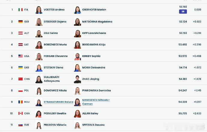 🛷米兰冬奥会双人雪橇项目,🇨🇳女子双人雪橇:古丽洁乃提・阿迪克尤木和赵佳颖迎来女子双人雪橇奥运首秀。她们第一滑的成绩是:54.180秒,排名第7。