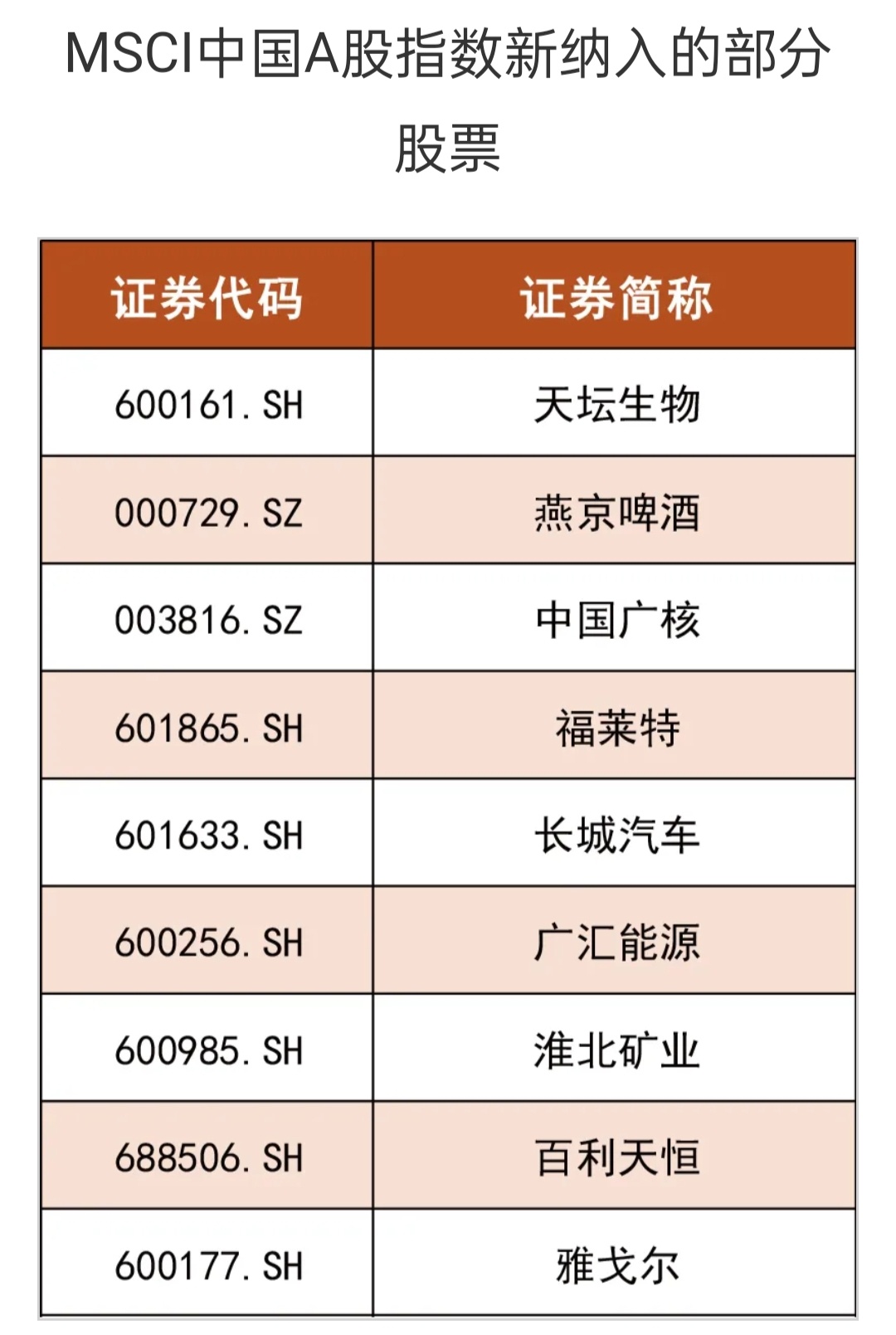 重要调整!MSCI中国A股指数新纳入33只股票(附表格)