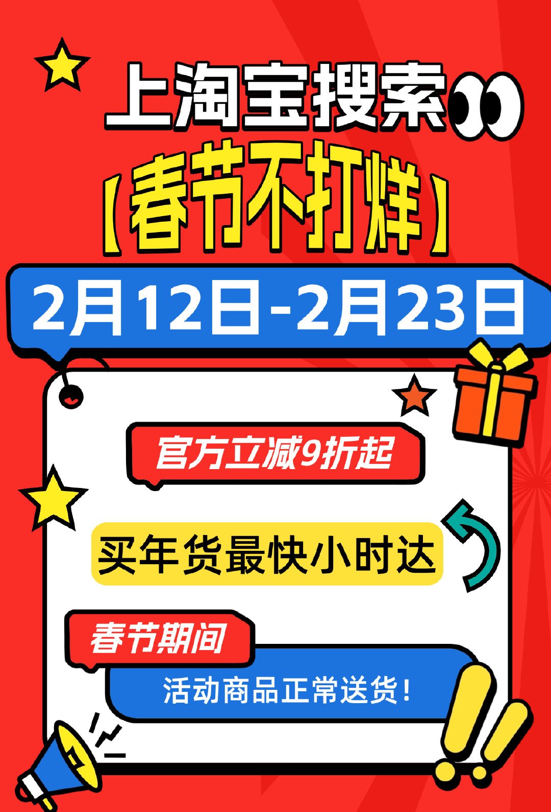 上淘宝春节不打烊年货小时达收拾行李发现箱子又塞爆了!没事,今年学聪明了——打算直接在🍑春节不打烊上买,官方立减9折起,刷到欣活骨能奶粉礼盒直接下单,最快小时达,人还没到家快递先到了。而且这次串门走亲戚两手空空?不存在的。还不用提前囤、不用人肉扛,轻轻松松体体面面,这才是过年该有的样子嘛~淘宝春节不打烊