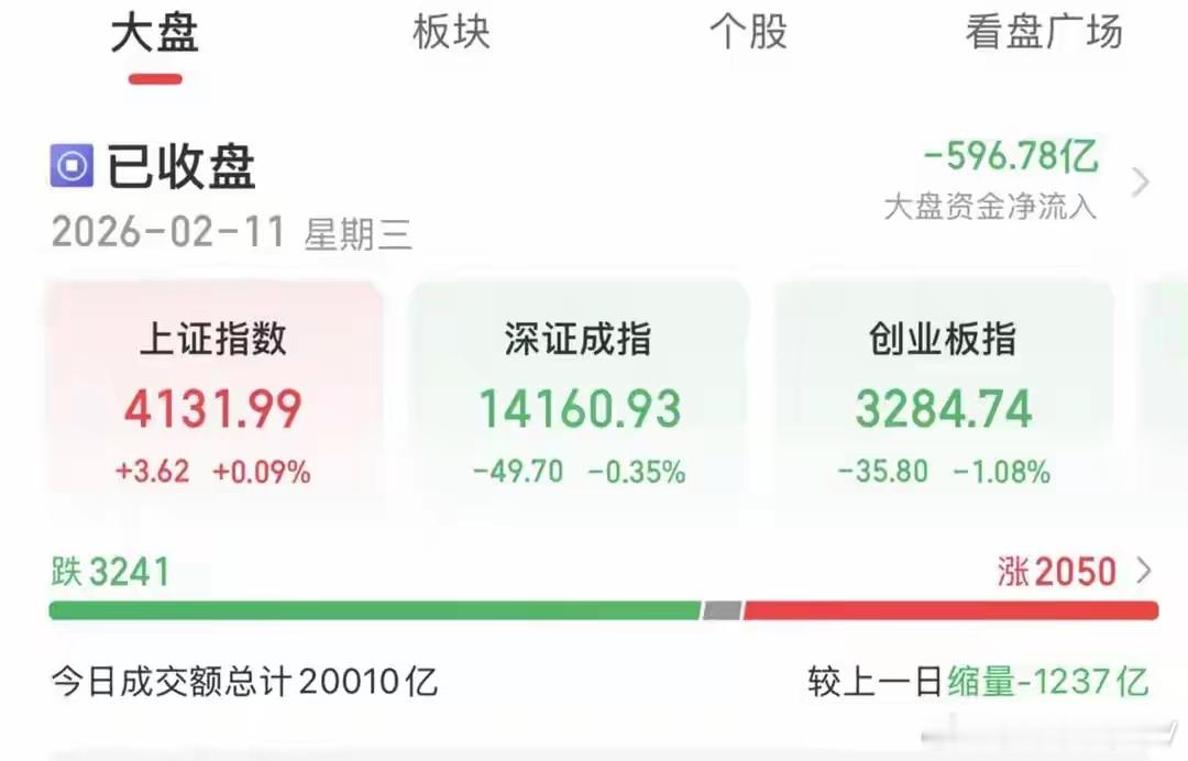 板块快速轮动!明日或迎节前布局节后良机A股全天缩量窄幅震荡,三大指数涨跌互现,市场整体赚钱效应偏弱,个股普跌,超3200只个股下行。煤炭、新能源板块相对领涨,芯片、影视板块跌幅居前。题材层面,受产品涨价驱动,小金属、化工等板块表现活跃,章源钨业、翔鹭钨业双双创出阶段新高;煤炭、钢铁、水泥建材等传统周期板块亦有所异动。短线情绪上,板块轮动明显加快:前一日强势的影视板块大幅回调,横店影视、金逸影视跌停;算力板块同步调整,中际旭创、新易盛领跌。受春节长假效应影响,主流资金趋于谨慎,仅部分游资在板块间快速切换,热点持续性较差,操作难度加大。当前盘面延续绩优蓝筹进二退一、题材个股进一退二的格局: 持有蓝筹方向的投资者,建议耐心持仓;偏好题材短线的投资者,宜以低吸为主、快进快出。大盘节奏上,明日为节前资金提现最后窗口,市场仍存在一定抛压,指数大概率继续窄幅震荡。但午后有望出现布局节后行情的低吸窗口,重点关注本周连续调整、基本面扎实的绩优品种,节后反弹概率更高。