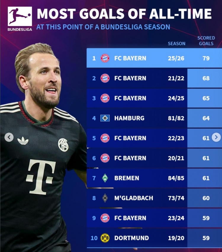 1.拜仁,25-26赛季,79球