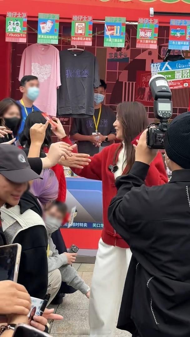第一次到順德花市的翠如,自爆此行有私心:「其實我尋日中午好唔開心,因為我唔記得咗買年花,但係諗起我今日要嚟喎……」隨即便詢問在場粉絲年花攤位在哪裏,然後笑笑口謂:「我一陣要去睇吓先。」她又拿起攤位上的TVB周邊利是封派給粉絲,預告福利陸續有嚟:「大家唔使擔心,有料嘅利是亦準備好啦。」惹來尖叫聲不絕。