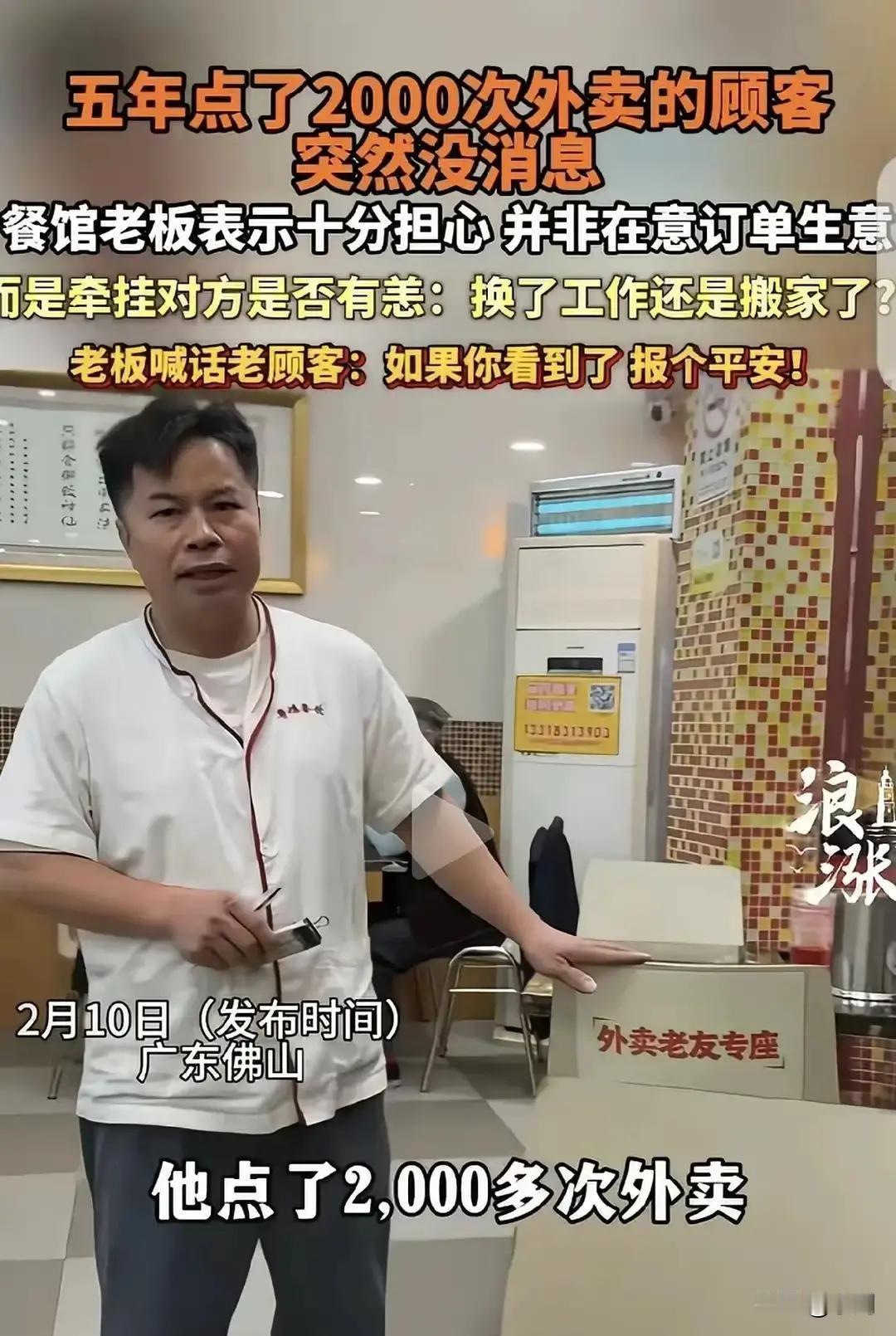 有家小馆子老板火了。 视频里他说有个老顾客五年点了2000单,突然一年多没动静,担心人出事,想请网友帮忙找人。 我看了眼店铺名,阿强粤味小馆,禅城区,外卖月销一千多单,评分四点九。 老板姓陈,四十出头,本地人,说话带粤语腔。 视频里他举着手机订单截图,一页页翻,说这位顾客最爱点白切鸡和蒸蛋,备注常写少盐。 评论区一堆人感动,也有质疑的,说五年两千单平均一周七八次,太夸张。 我翻了翻平台,确实只能查到近两年记录,再往前数据没有。 老板没报警,也没贴出顾客电话,只说希望人平安。 这年头,真假难辨,但一个开小饭馆的能记得一个老顾客口味,还惦记着,已经挺难得。 不管故事真假,有人把顾客当朋友,而不是一串数字,这份心就值得点个赞。
