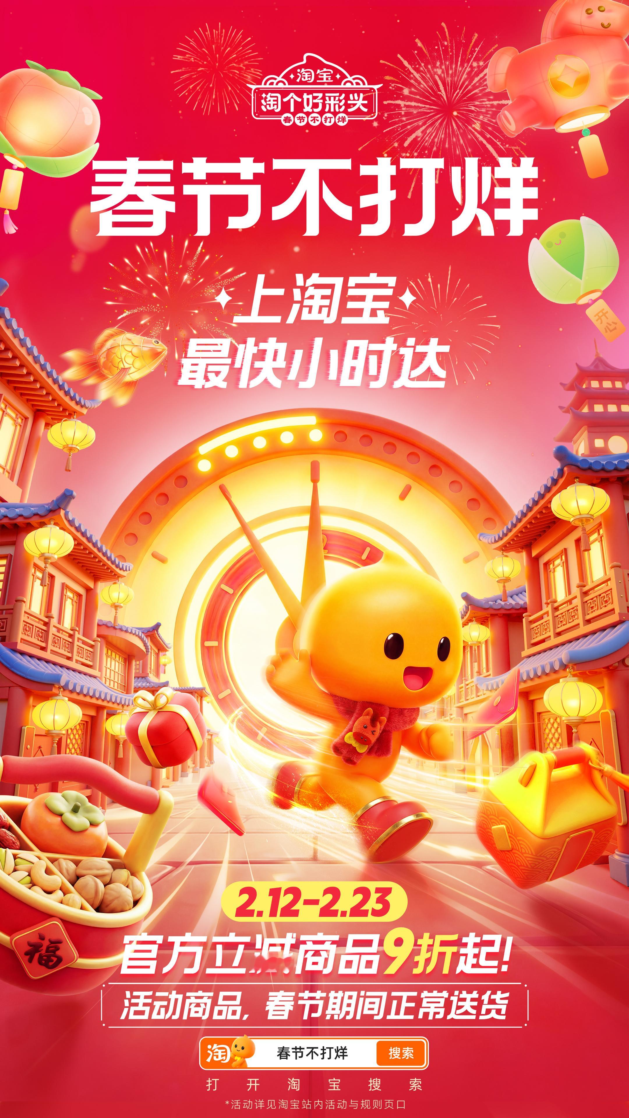 上淘宝春节不打烊年货小时达谁家过年走亲戚像打仗?我家!七大姑八大姨,一家一份礼,还得不重样!往年这时候,我得把全城的超市、特产店跑个遍,左手酱鸭右手坚果,挤公交像在逃难,最崩溃的是——冲到货架前,空了!还好今年冲浪的时候发现淘宝春节不打烊,2.12-2.23上淘宝搜索【春节不打烊】,活动商品正常送货不说,最快还能小时达!官方立减商品9折起,咱就是说这波属于是性价比和时效性都拿捏了!舅舅家的牛奶礼盒、小姨点名要的坚果、堂妹最爱的网红零食.....通通一键加购,不用再出门、不用再排队、不用大包小包再挤地铁!现在只需要懒懒的躺在沙发上,等着收获七大姑八大姨收到年货后刷屏式大拇指就行咯!👍