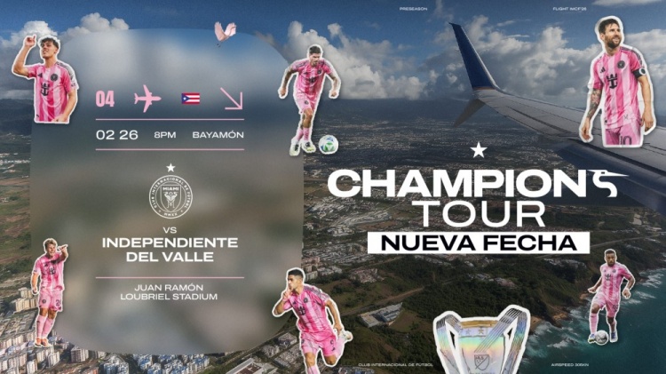 迈阿密国际足球俱乐部今天宣布,2026年冠军巡回赛的最后一场比赛将推迟到2月26日举行。俱乐部与赛事主办方及波多黎各政府合作,认为调整比赛日期将为波多黎各的球迷提供最佳体验。比赛仍将在波多黎各巴亚蒙的胡安·拉蒙·卢布里尔体育场进行,对手仍然是独立德尔瓦列队。
