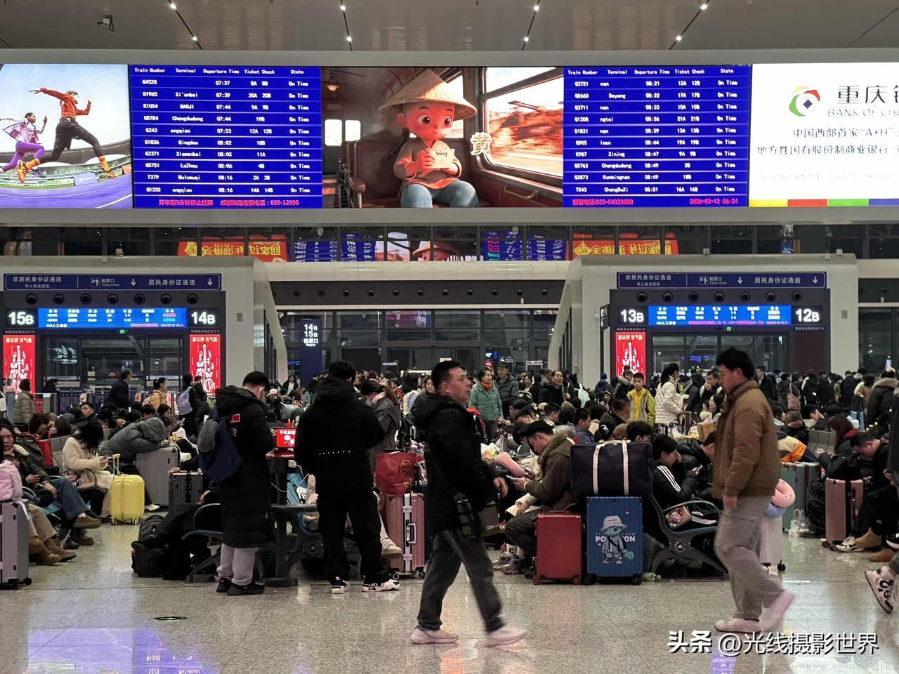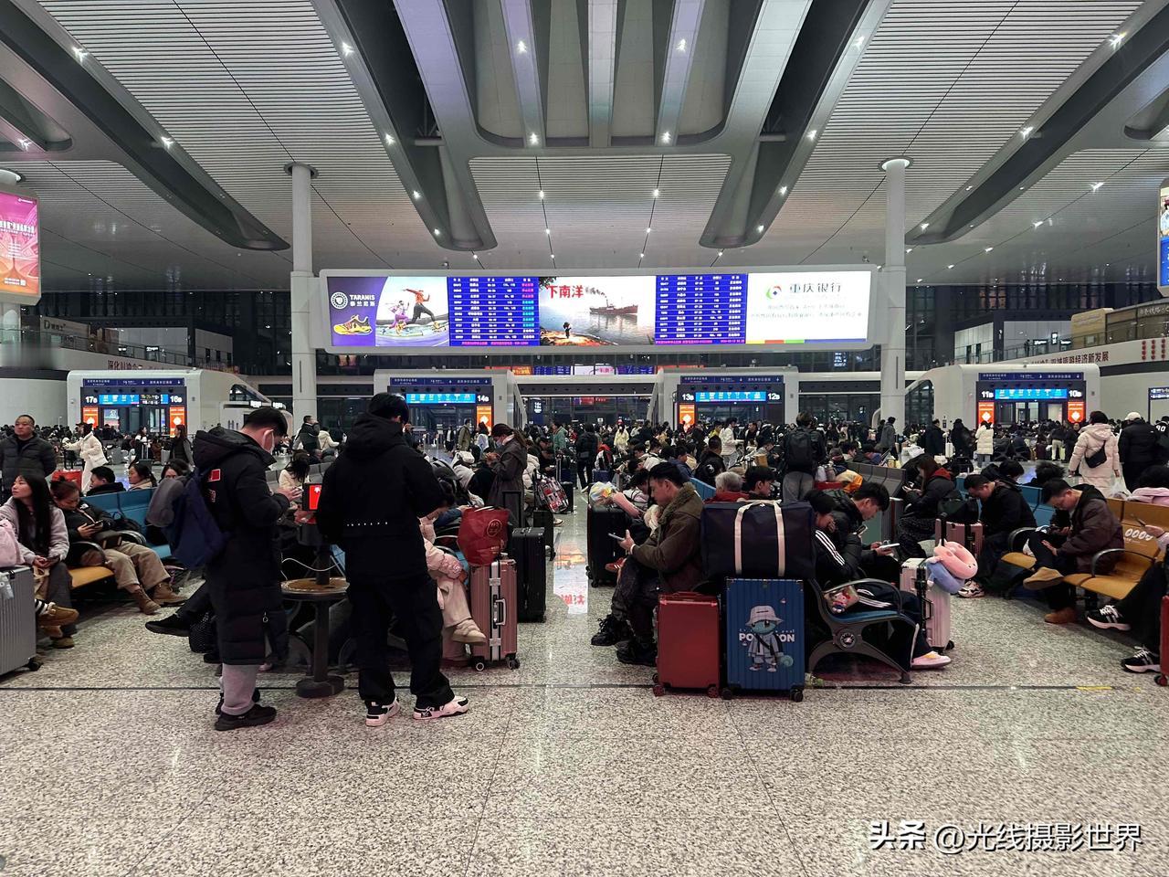 2月12日一大早,天还漆黑但是重庆西站人山人海春运太热闹啦!凌晨6点半左右,男厕所居然也有十几个人在排队等着蹲坑拉屎……春运期间,千万要留出足够的时间,不要掐着时间…… 出远门之前,赶火车赶飞机之前,千万不要吃重庆火锅啊! 早上,千万不要吃稀饭配包子,尿多尿急尿频啊! 今天一大早,安检进站排队大概五分钟……目前不堵车! 大家抵达重庆西站,建议不要打车,以免被宰,随便坐几站地铁出去再打网约车比较安全啊!千万别不相信! 2026年春运,重庆西站比重庆东站热闹很多啊!大家觉得呢? 春节期间,全国各地,有反反复复的过山车天气,快速升温,快速降温,快速升温又降温……周而复始,温度高的时候出门大家一定要多带一件衣服啊!