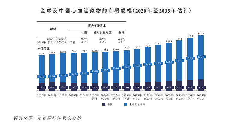 此趋势显示,尽管中国心血管药物市场在2020年至2024年间出现收缩,但预计于2025年至2035年间将恢复增长,并超越全球的扩展速度。