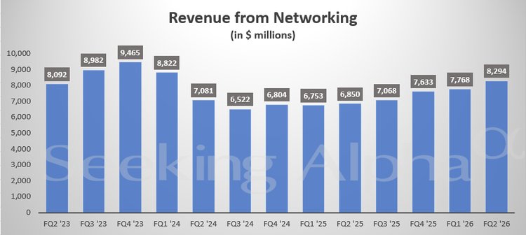 展望2026财年全年,思科上调了业绩预期。公司目前预计全年营收在612亿至617亿美元之间,对应增长率约为8.5%,调整后每股收益为4.13至4.17美元。这一展望优于此前预期的602亿至610亿美元营收及4.08至4.14美元的每股收益,同时也超过了分析师预测的607.4亿美元营收和4.12美元每股收益。