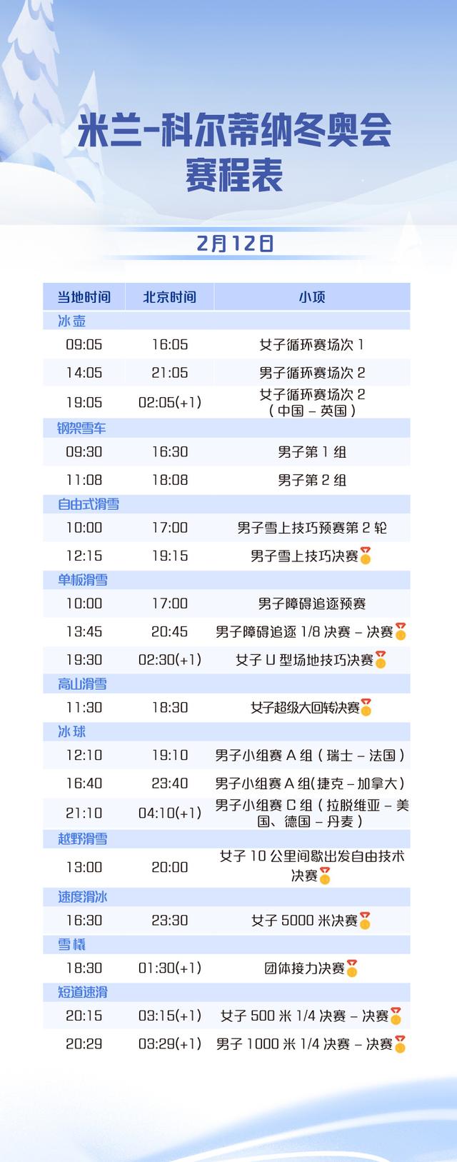 米兰冬奥会今天产生9枚金牌,中国队将亮相多场决赛,并在短道速滑、单板滑雪女子U型场地技巧等项目冲击奖牌。