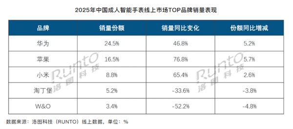 华为以24.5%的销量份额稳居市场榜首,全年同比大涨46.8%,份额较2024年提升5.2个百分点。