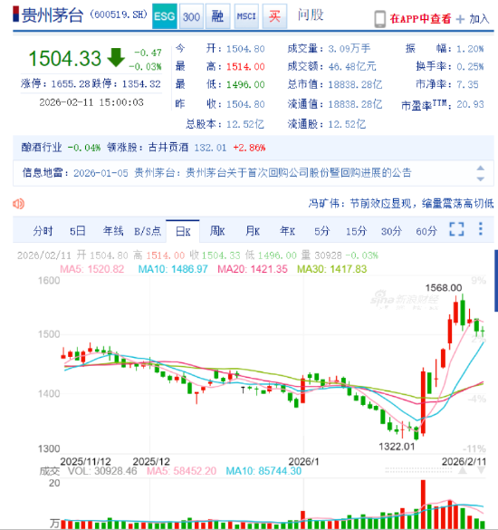 这种变化更得到了资本市场的认可。陈华上任时,茅台股价为1416.3元,而截至2月11日收盘,茅台股价已经上涨至1504.33元。