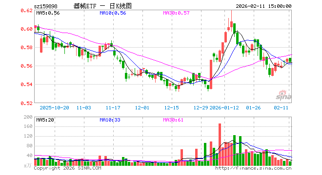 2月11日,医疗器械指数ETF(159898)跌0.53%,成交额887.53万元。当日份额减少200.00万份,最新份额为14.32亿份,近20个交易日份额减少1.91亿份。最新资产净值计算值为8.08亿元。